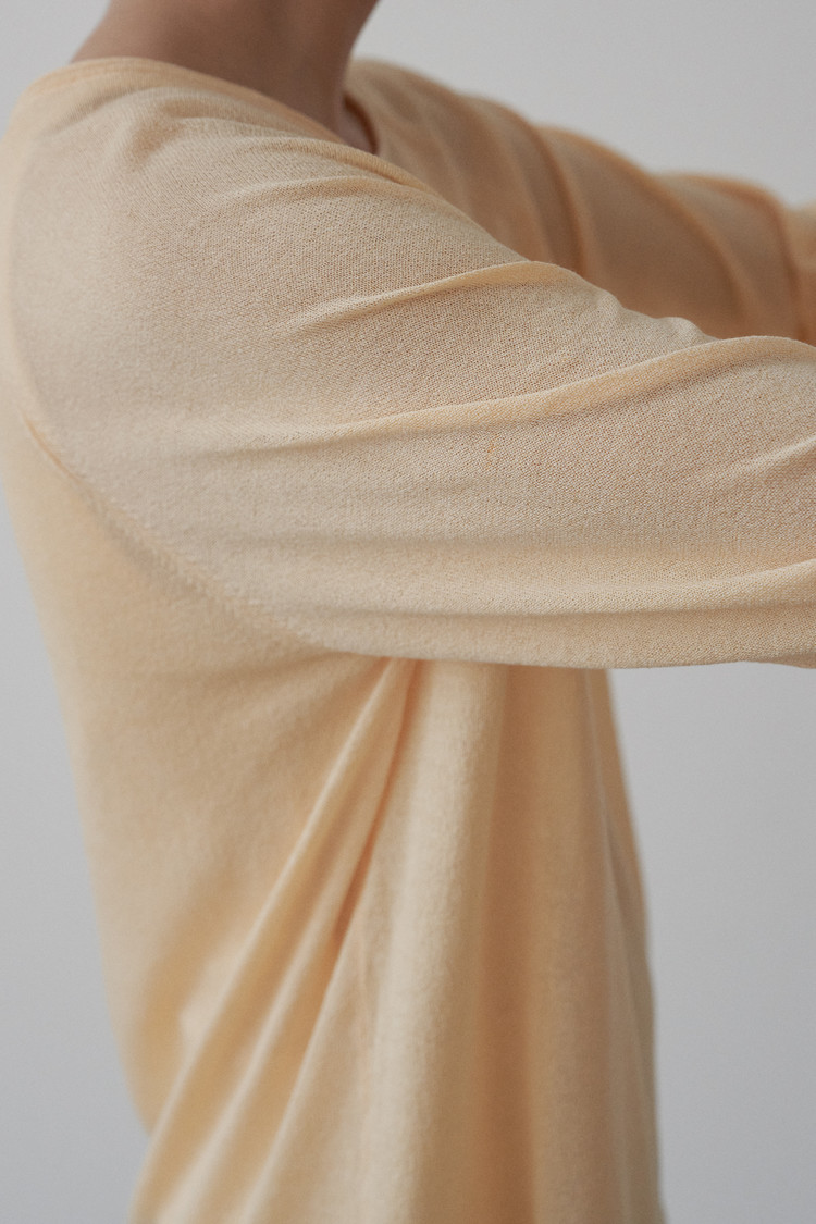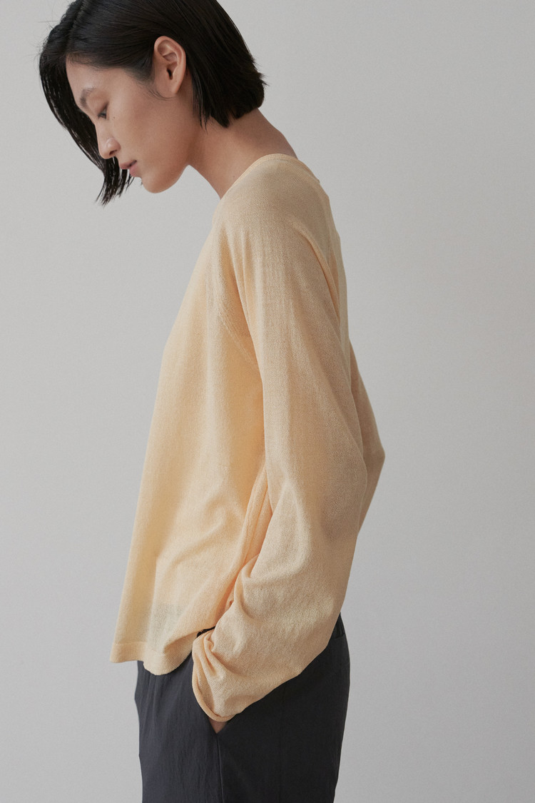 ○ 원사의 꼬임이 극대화된 강연원사를 사용하여 가볍고 피부에 잘 달라붙지 않으며 시원한 촉감이 특징인 니트입니다.