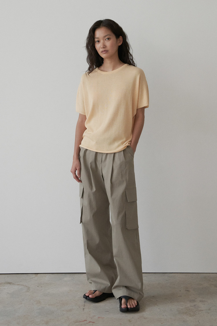 ○ 원사의 꼬임이 극대화된 강연원사를 사용하여 가볍고 피부에 잘 달라붙지 않으며 시원한 촉감이 특징인 니트입니다.