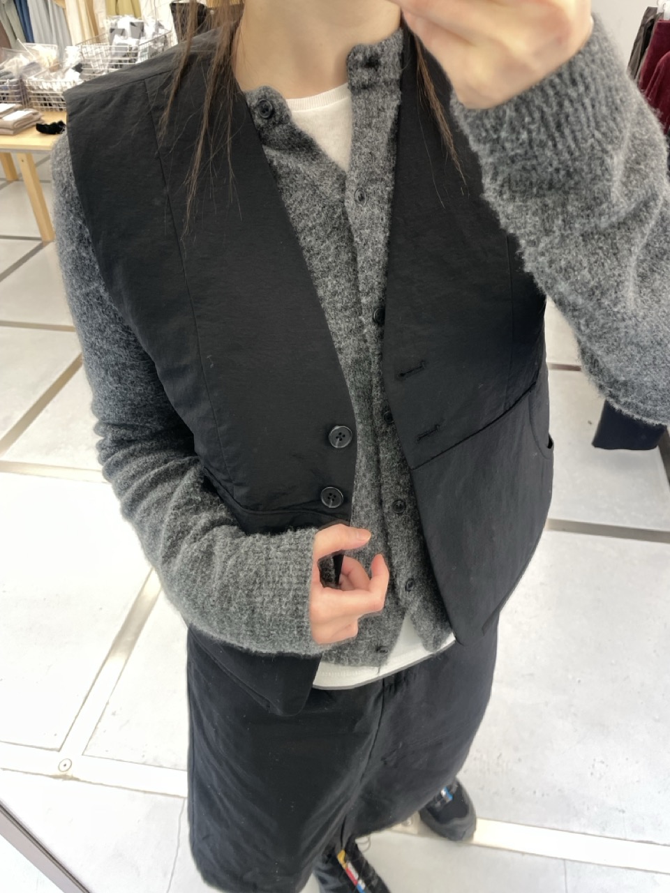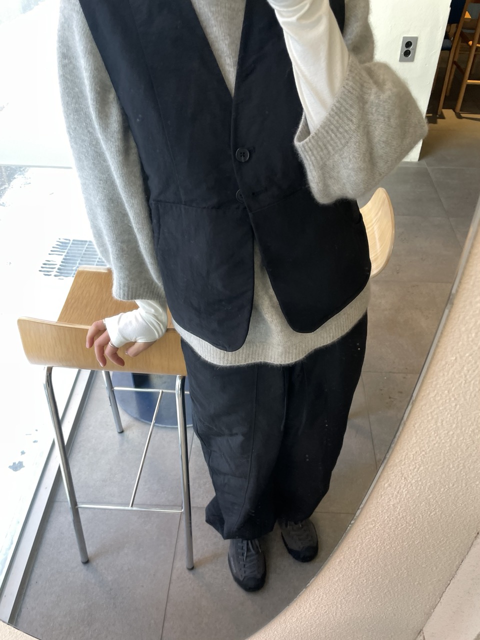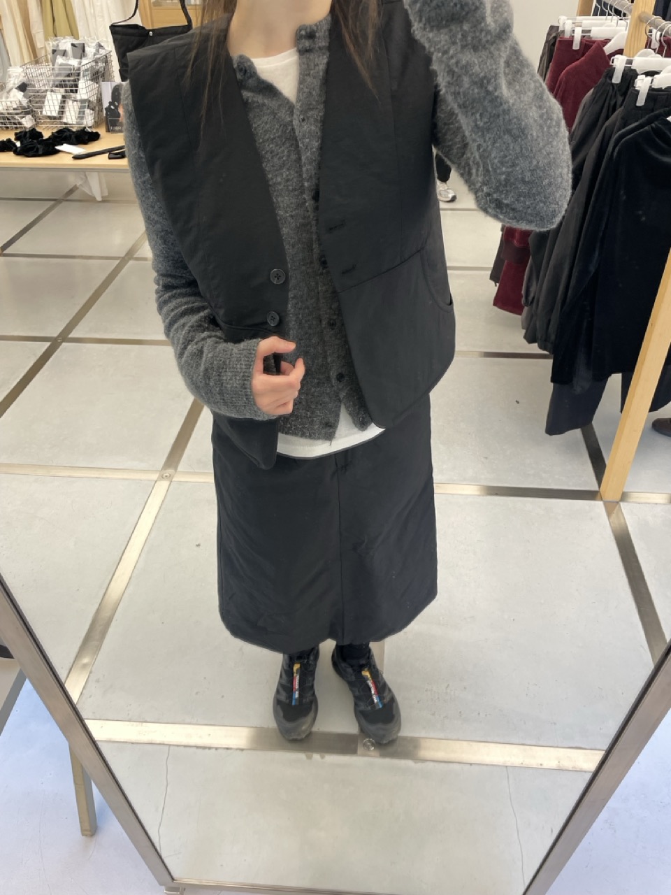 조용하고 단정한 라인의 패디드 베스트입니다.
