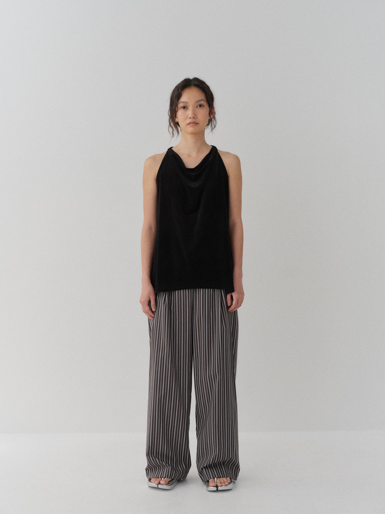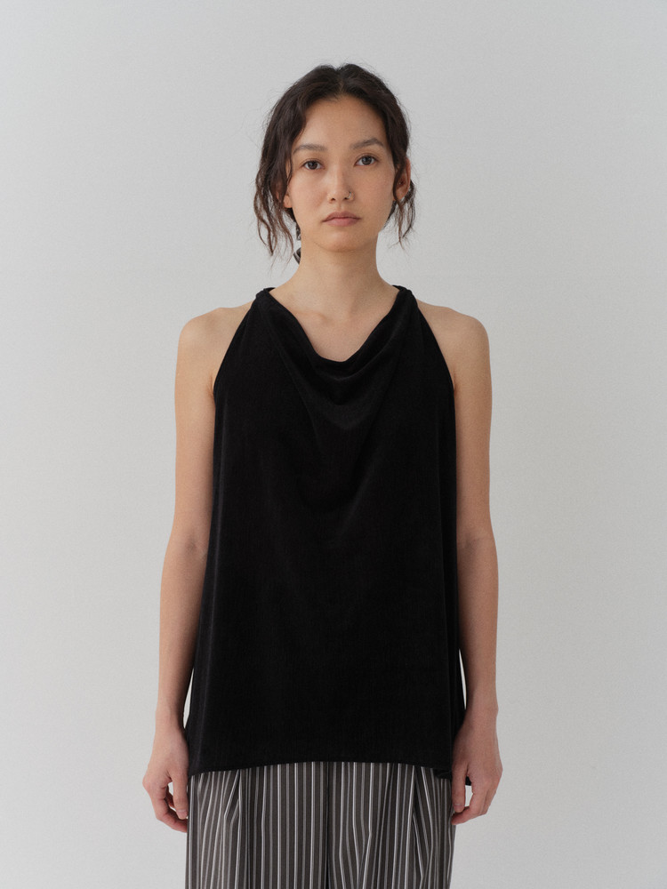 깊고 부드럽게 무더지는 후면의 드레이프 디테일이 돋보이는 디자인입니다.