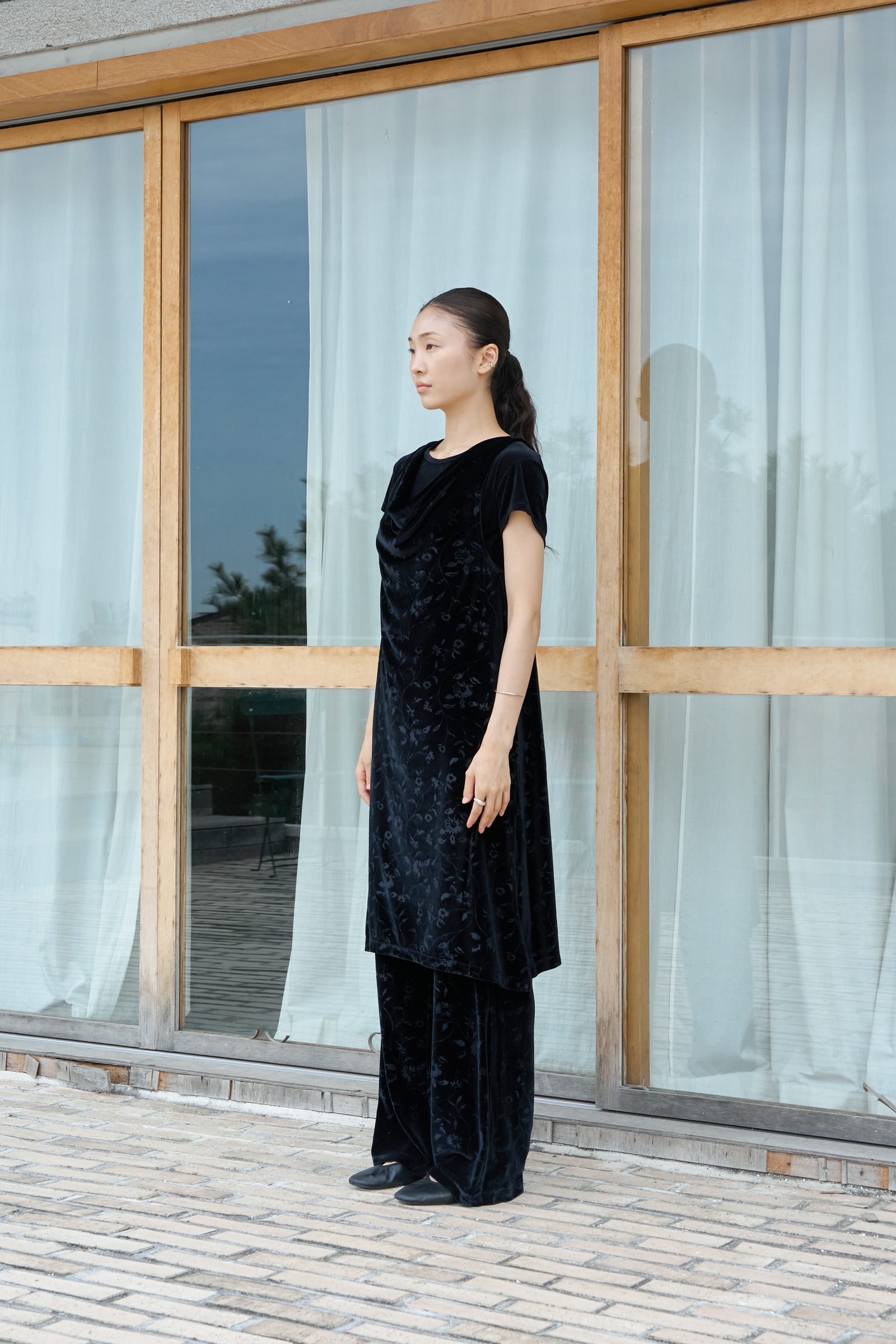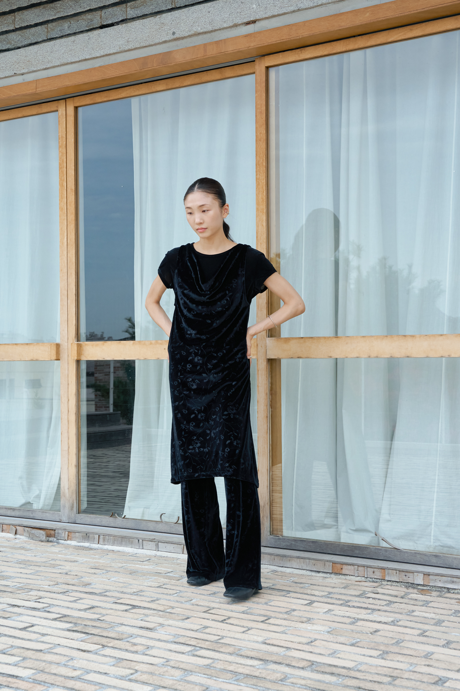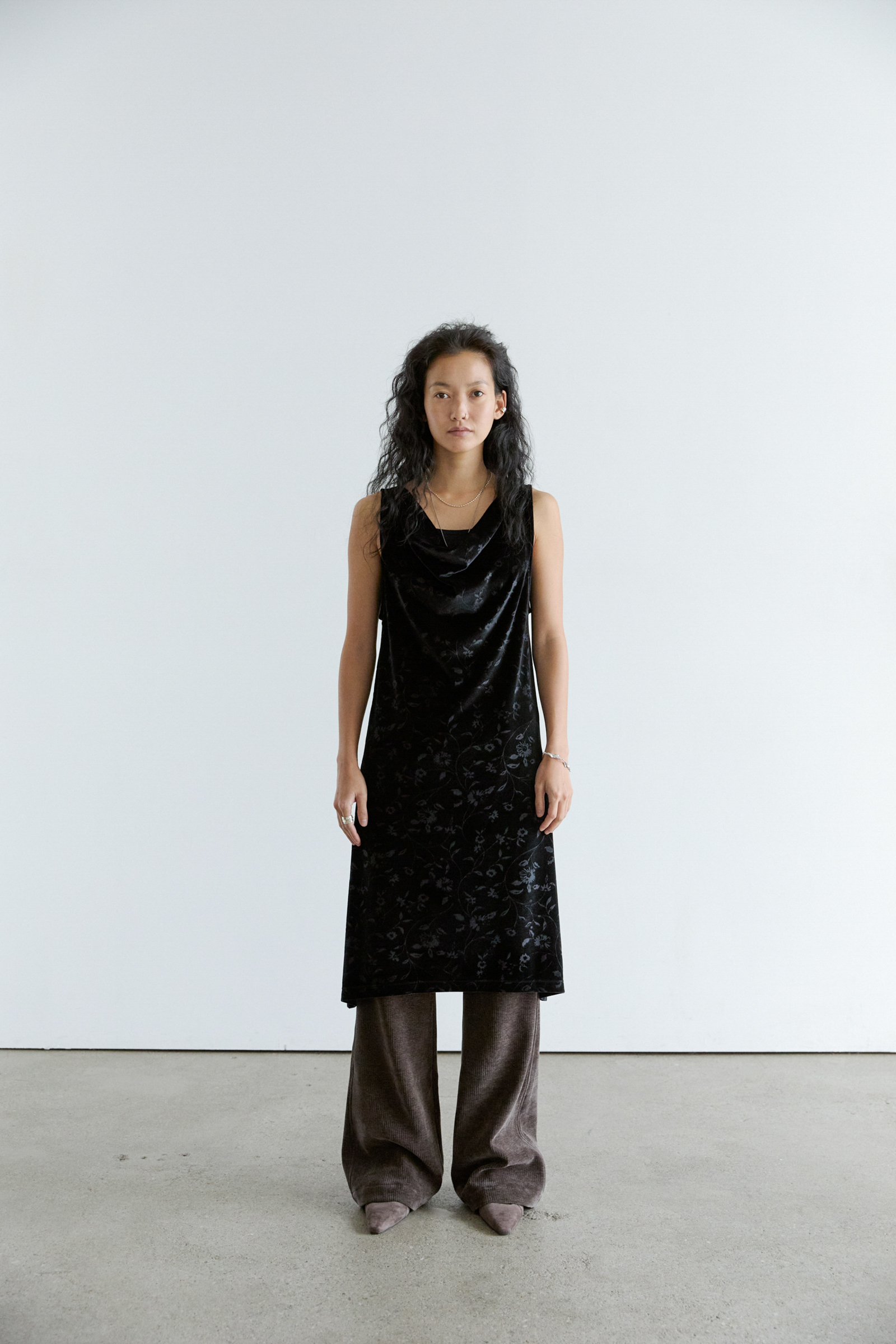 중량감이 느껴지는 50데니아 벨벳으로 완성한 드레스입니다.