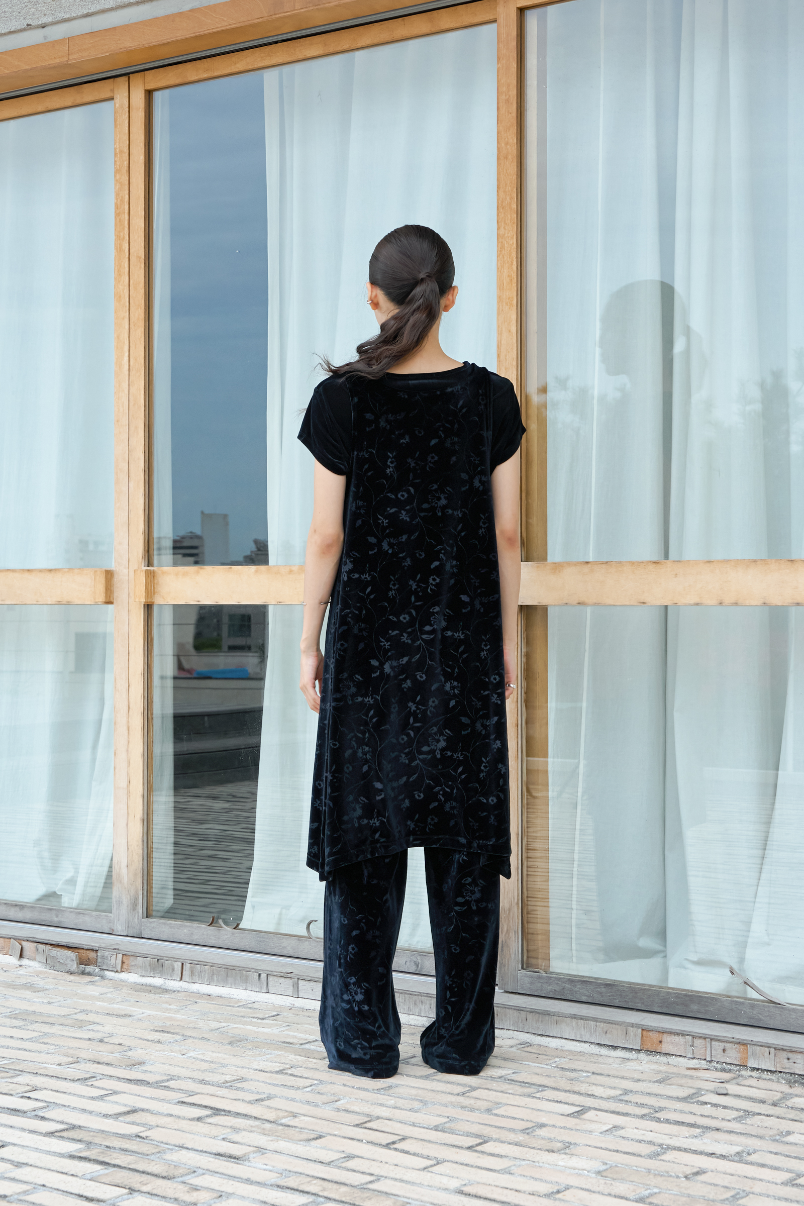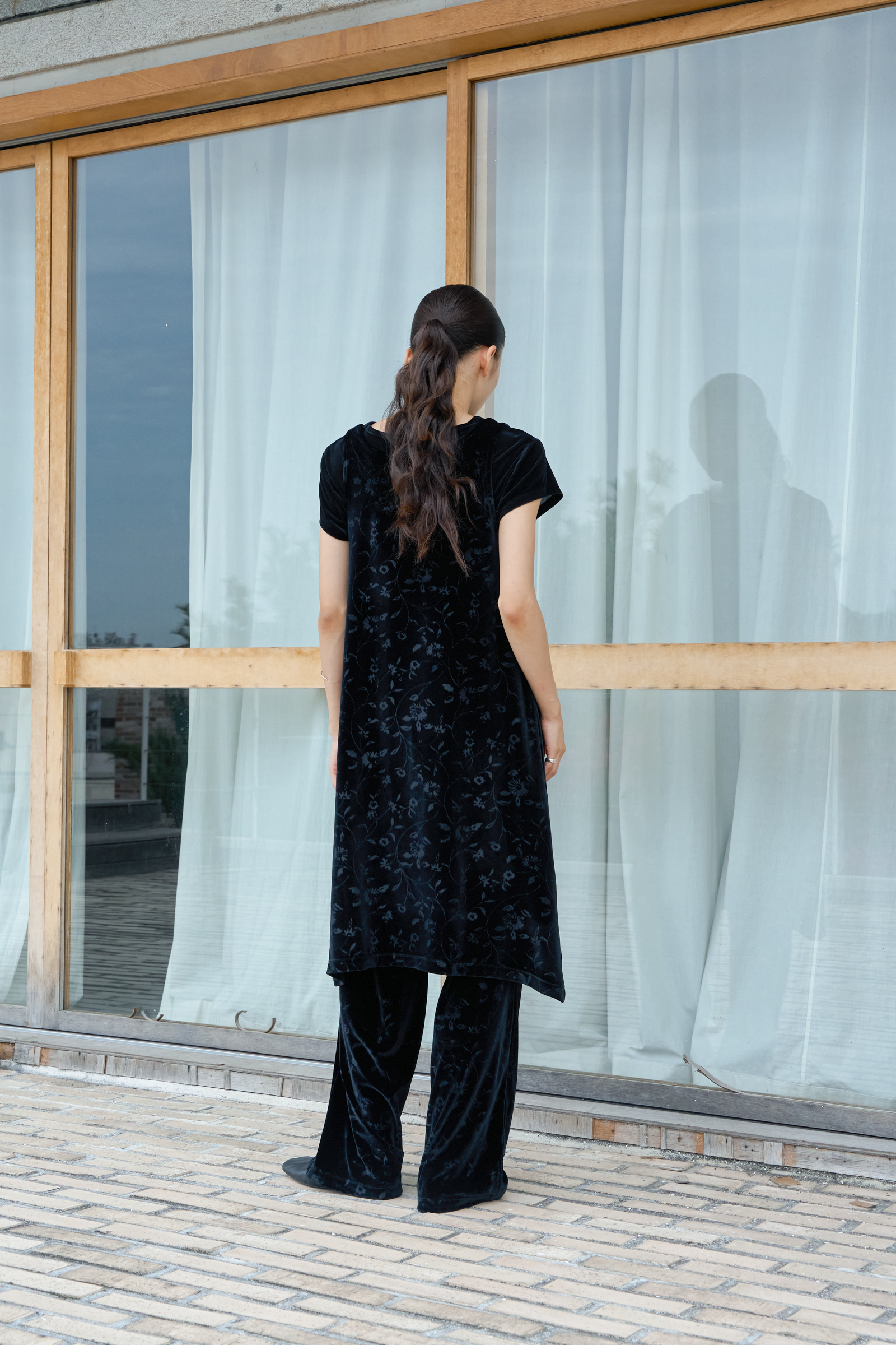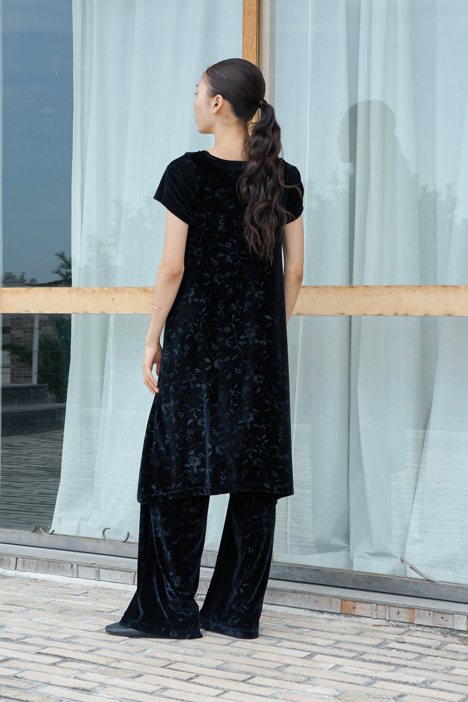 같은 무늬의 플로럴 벨벳 밴딩 팬츠와 셋업으로 매치하면