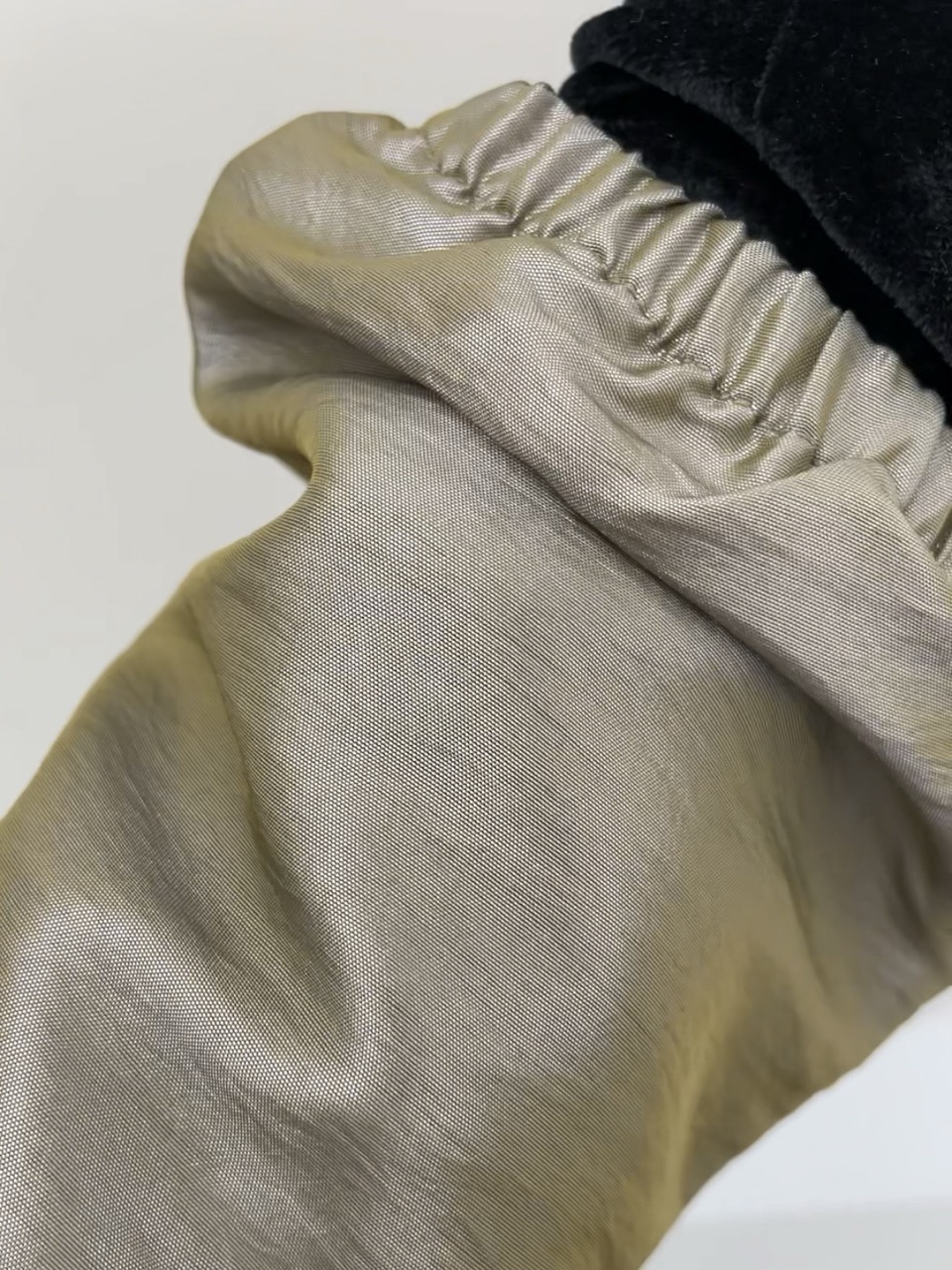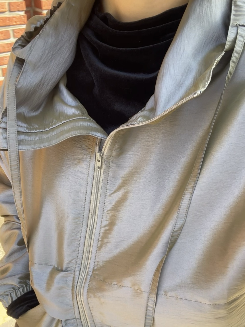 23SS 출시된 나일론 윈드 자켓에서 발전된 디자인으로, 투 톤의 메탈릭한 광택이 감도는 나일론 혼방 원단으로 만들었습니다.
