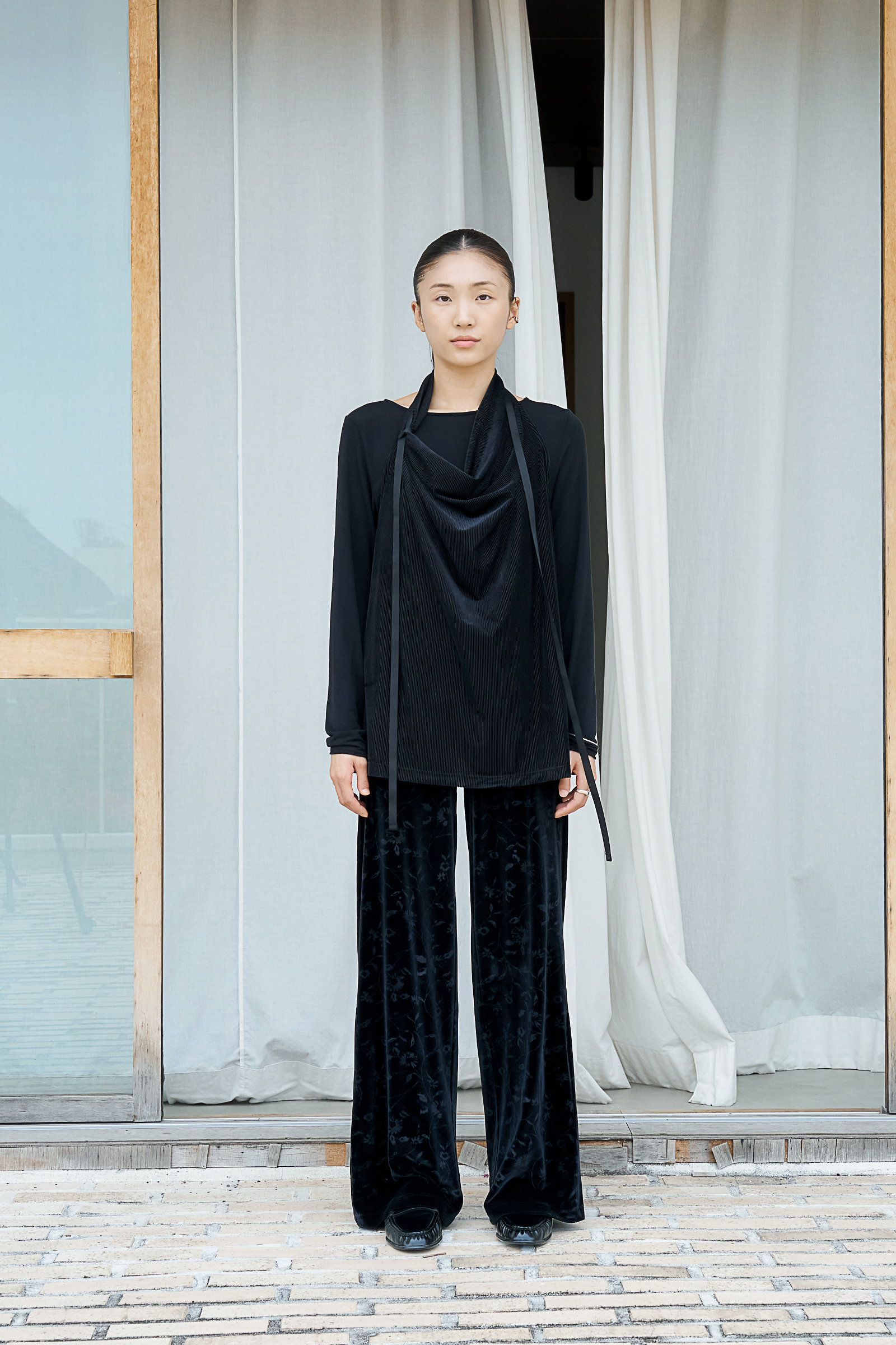 루즈하게 흐르는 실루엣은 차분하면서도 세련된 무드를 완성하며,