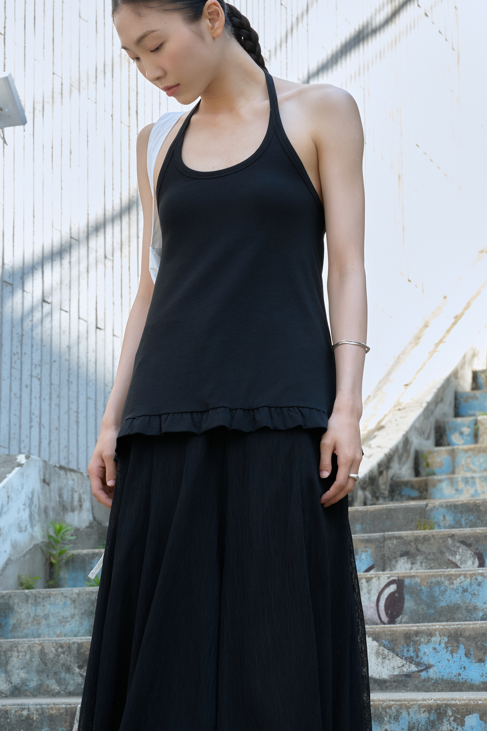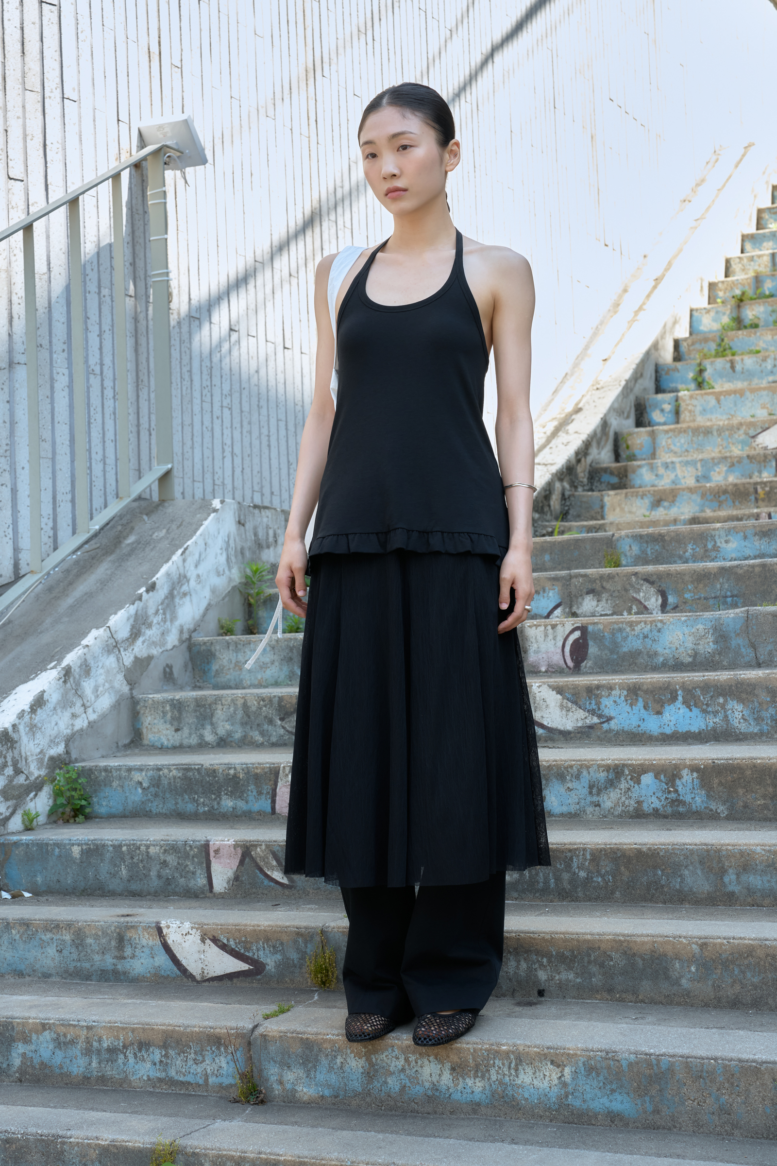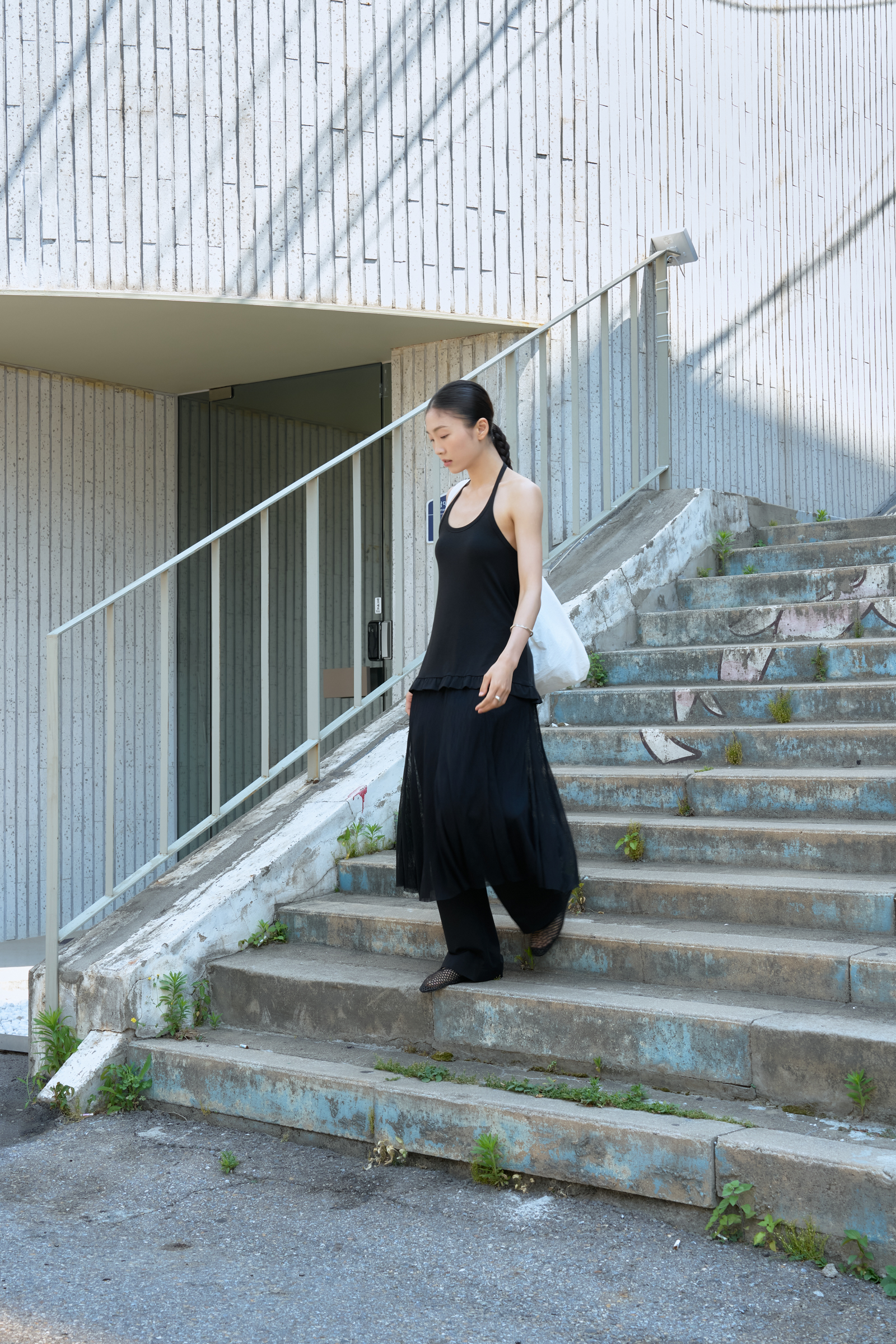 넥 바인딩이 등까지 자연스럽게 이어지는 홀터 디자인