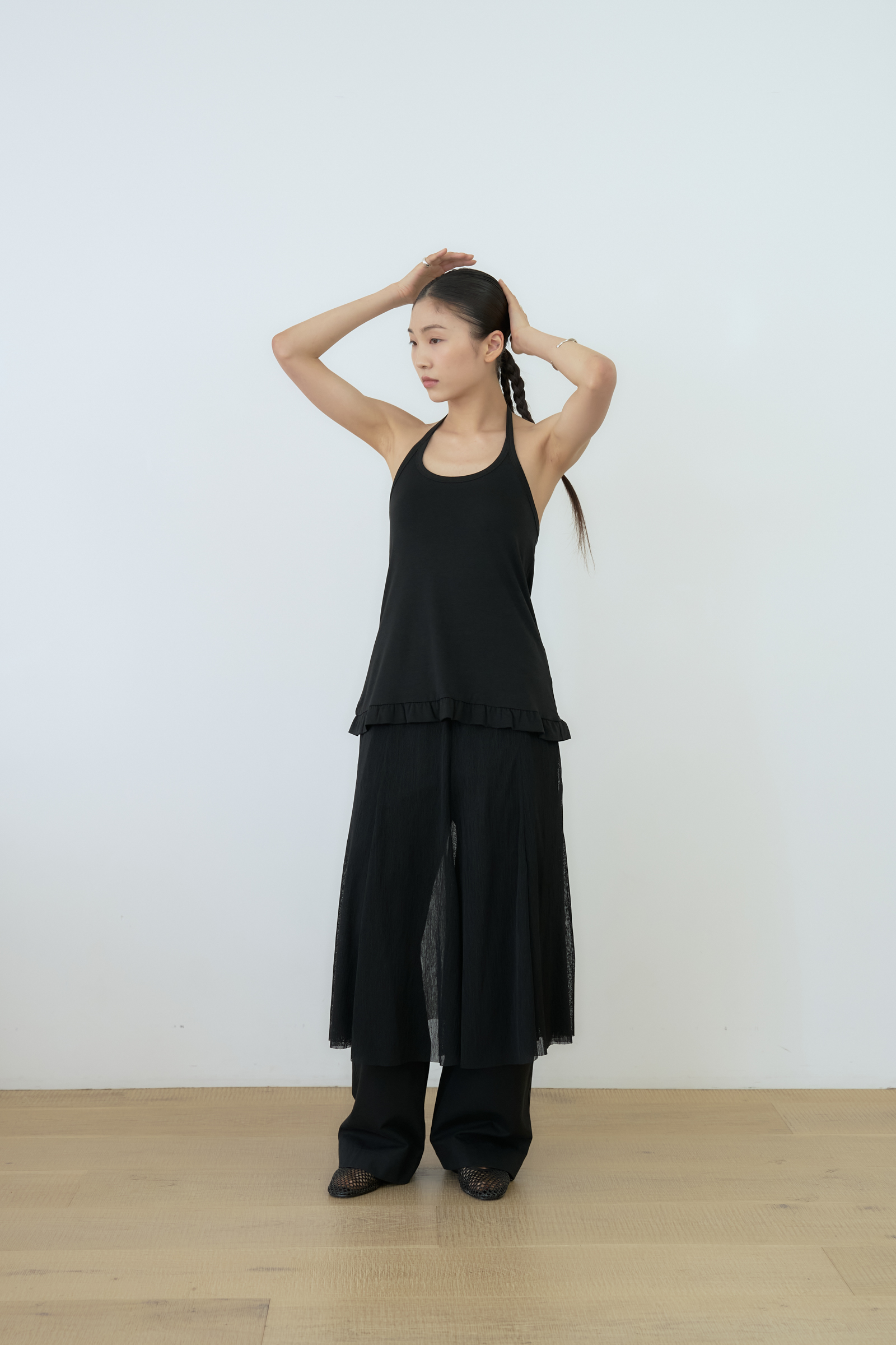넥 바인딩이 등까지 자연스럽게 이어지는 홀터 디자인이