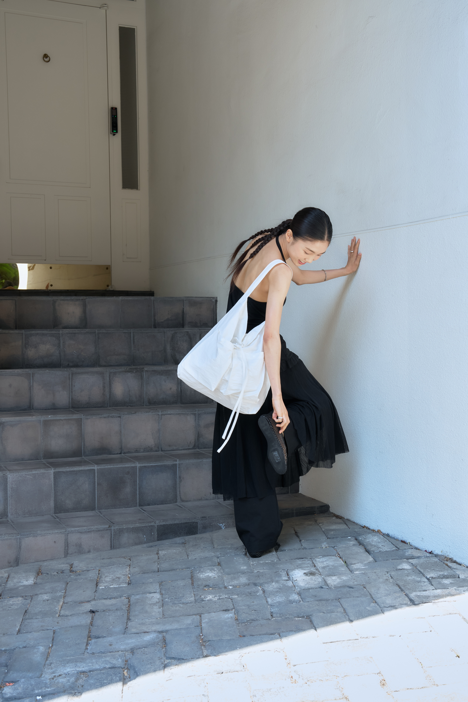 시원하게 드러난 어깨선과 부드럽게 감기는 실루엣.