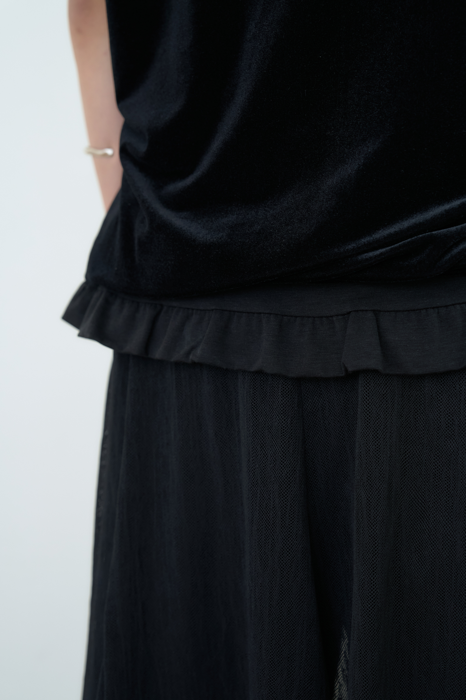 | (cm) | 총기장(앞중심) | 총기장(뒷중심) | 가슴너비 | 밑단너비 |