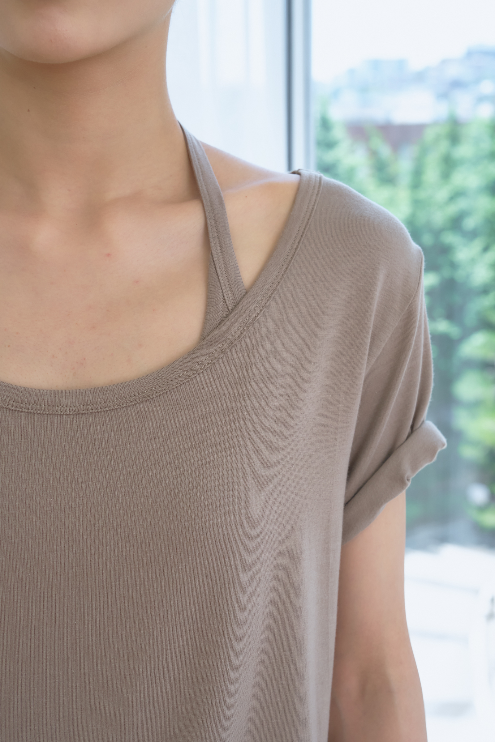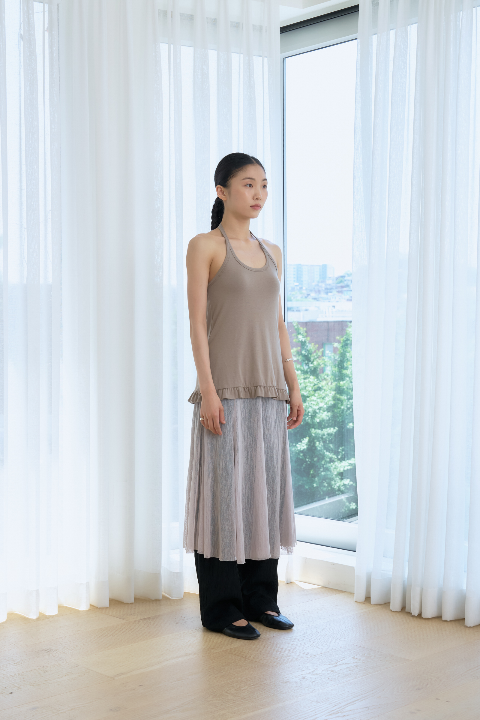 넥 바인딩이 등까지 자연스럽게 이어지는 홀터 디자인