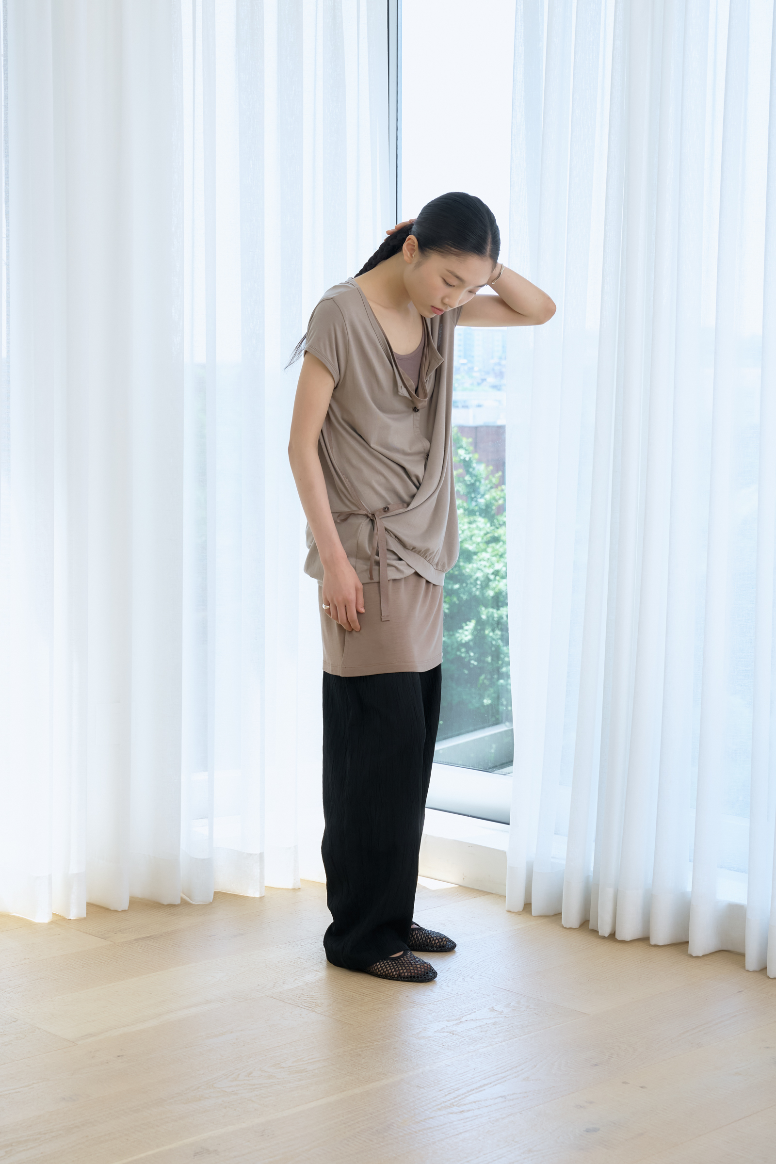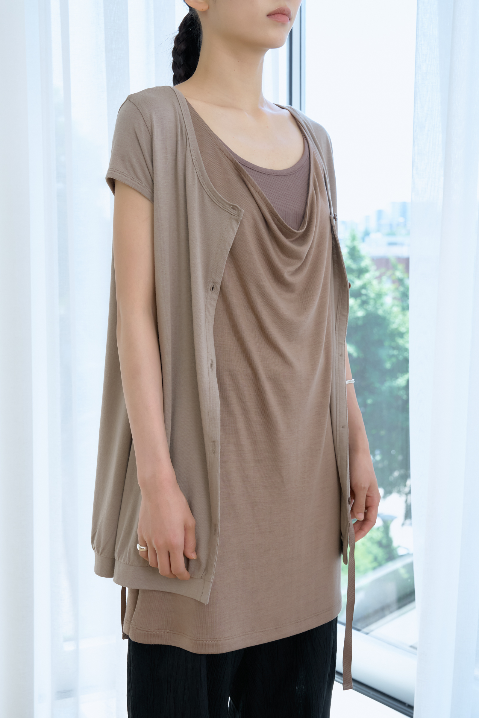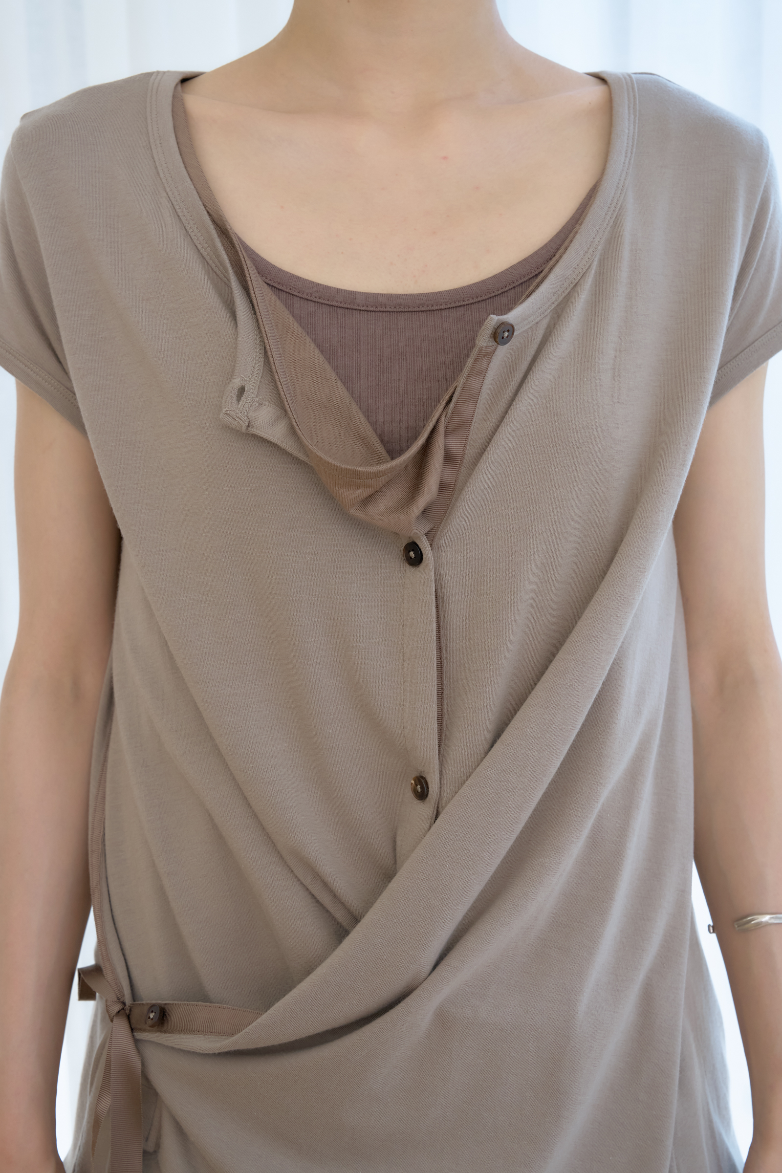 앞뒤 구분 없이 착용 가능한 드레이프 넥라인