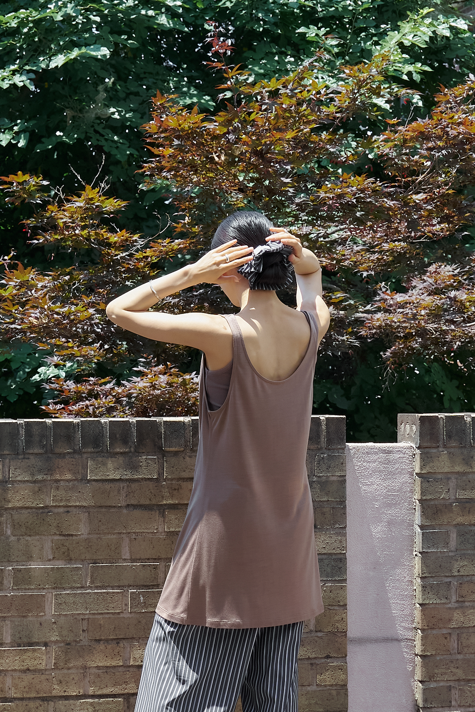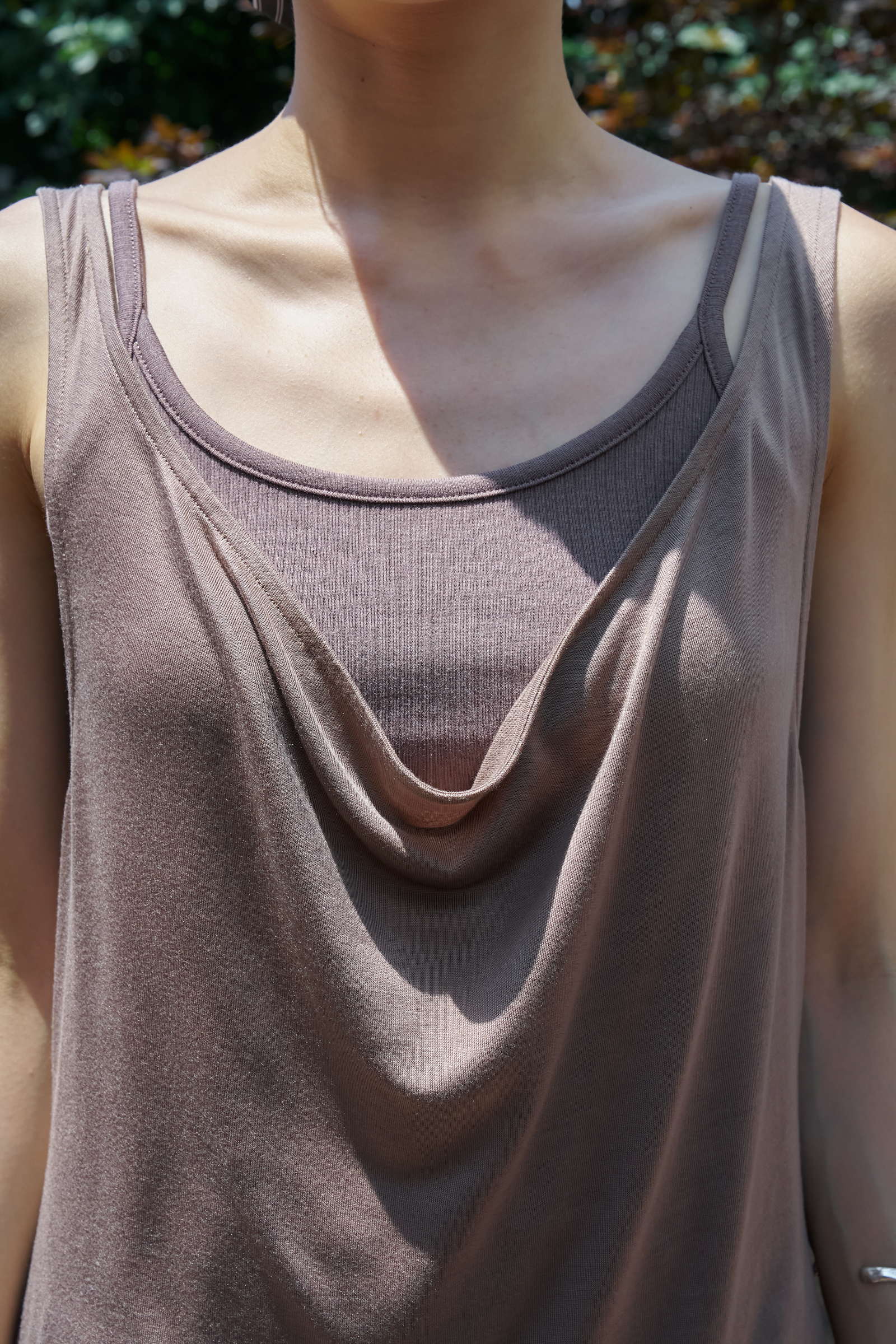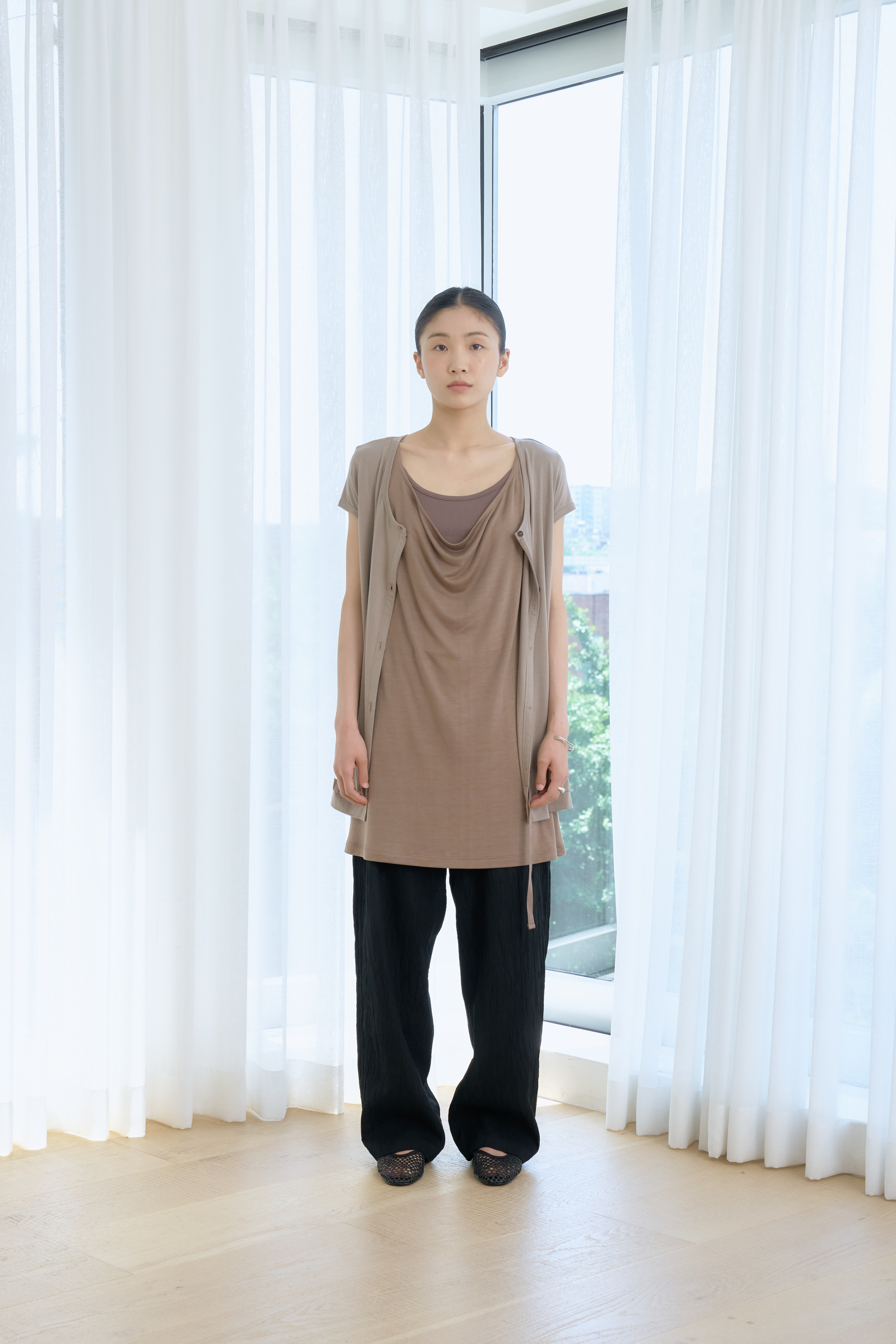 앞뒤 구분 없이 착용 가능한 드레이프 넥라인
