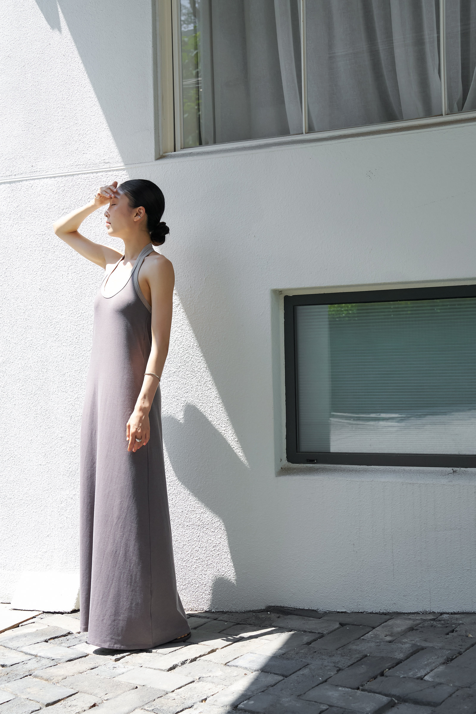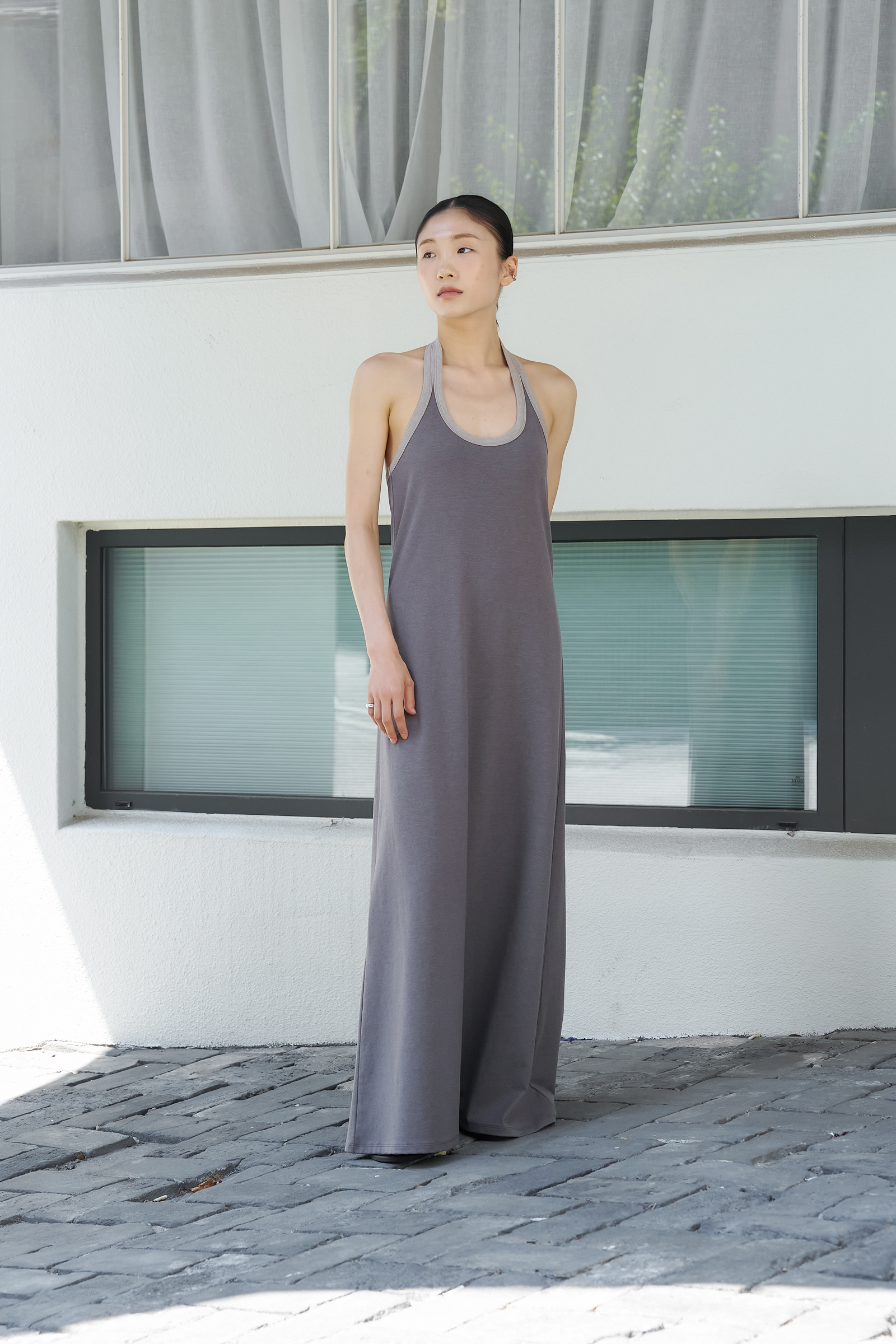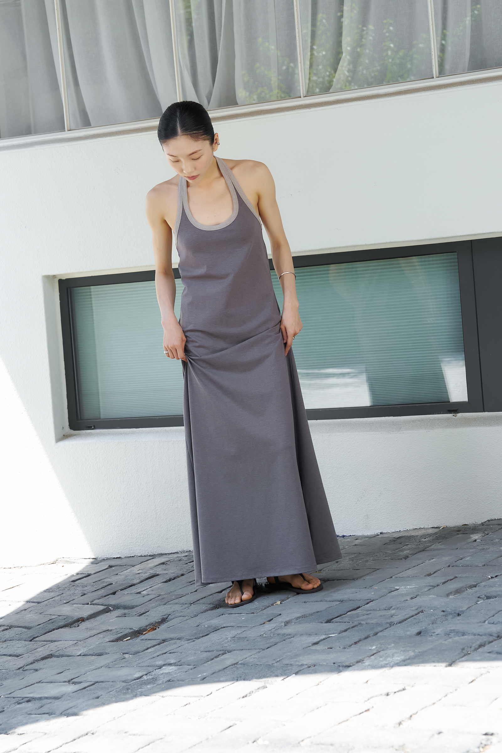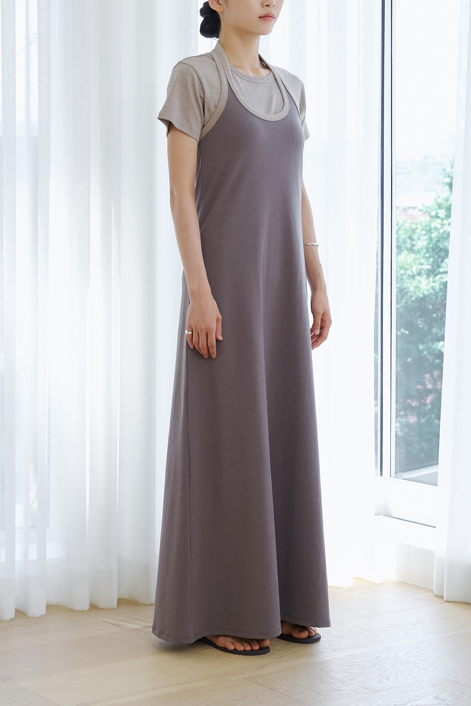조용하게 실루엣을 이끄는 드레스입니다.
