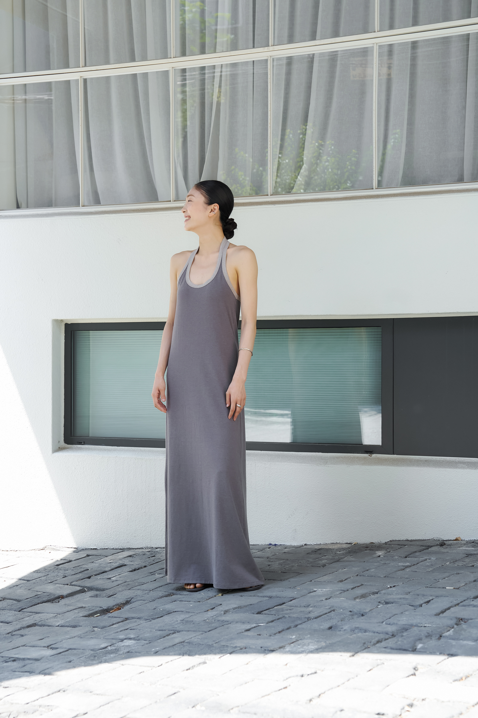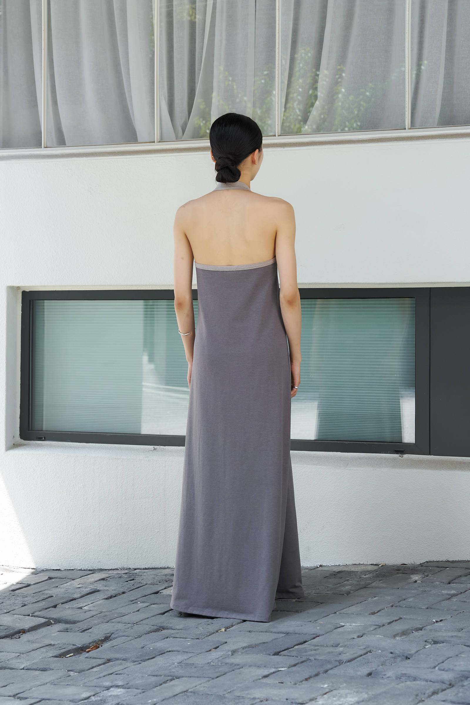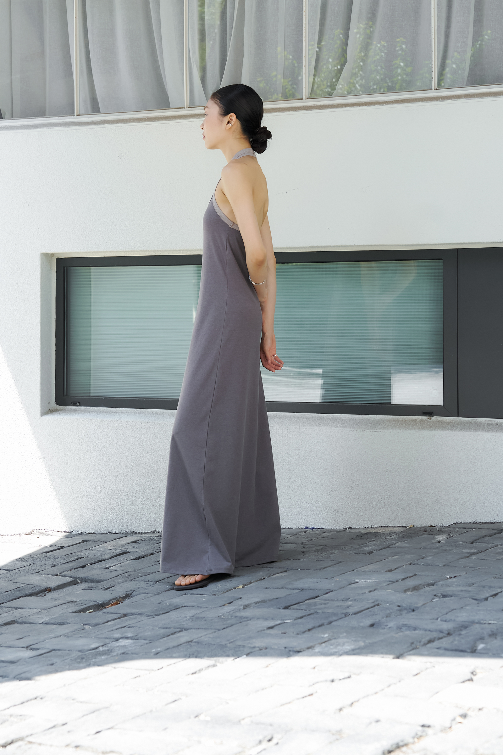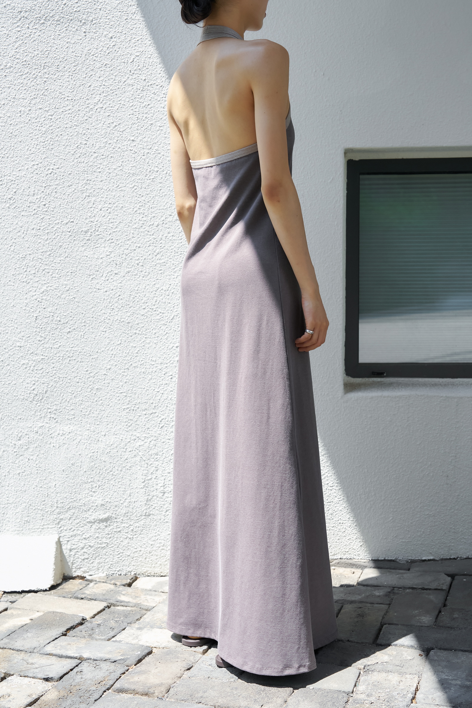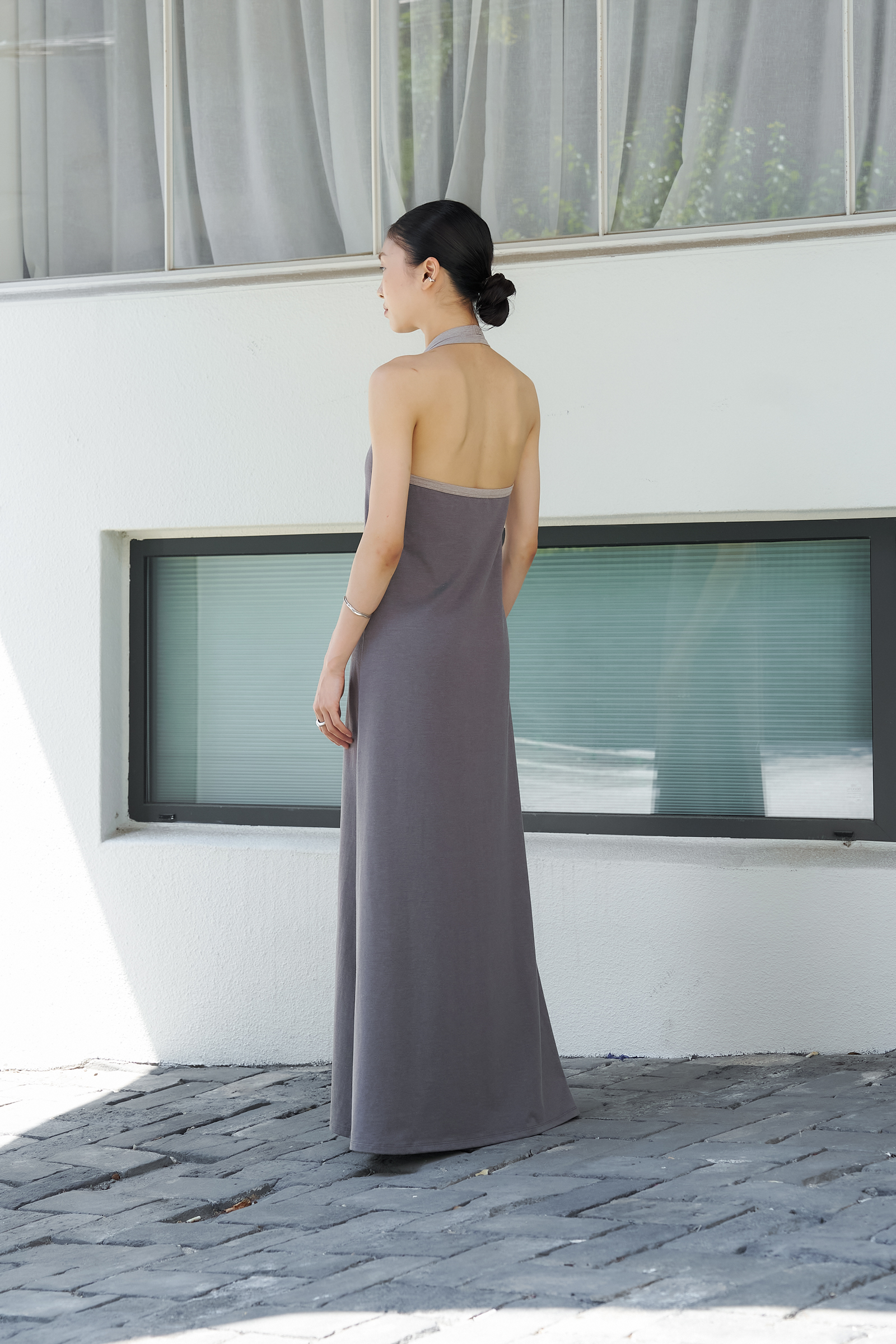 조용하게 실루엣을 이끄는 드레스입니다.