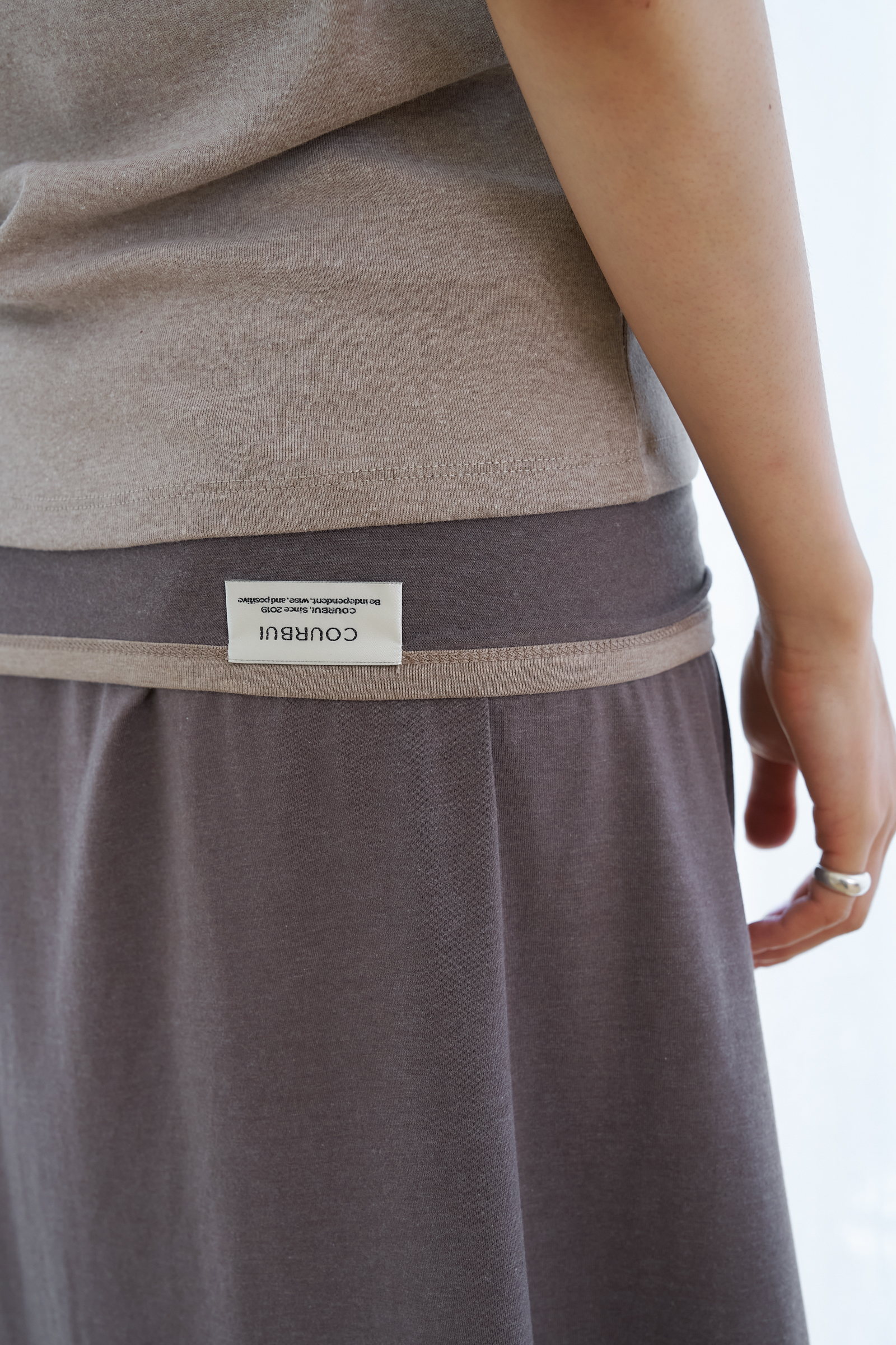 몸판과 톤 차이를 둔 넥 바인딩 디테일은