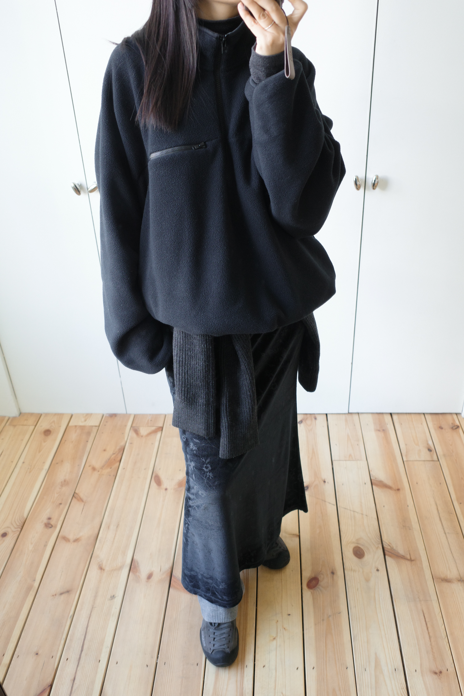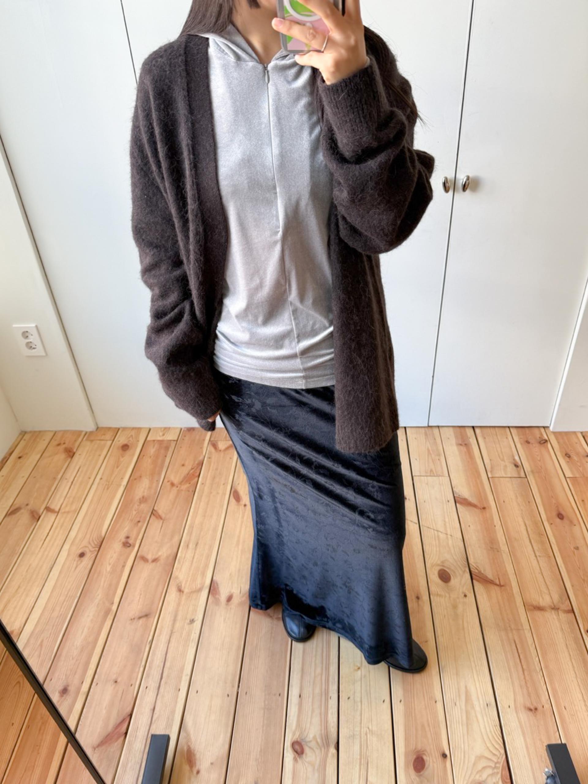 이 스커트 하나만으로도 룩이 완성되는 느낌이 있습니다.