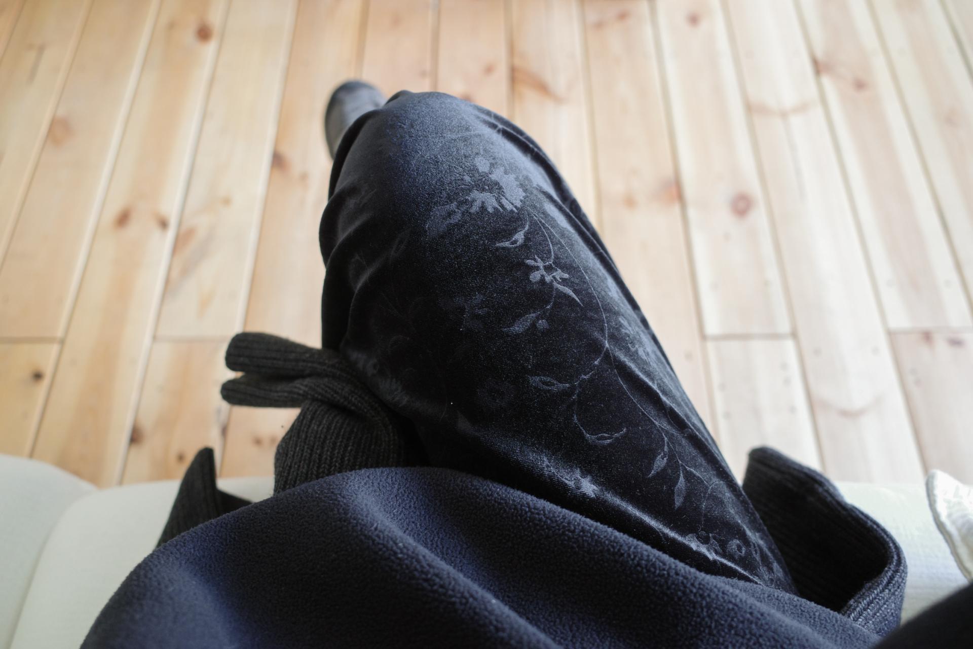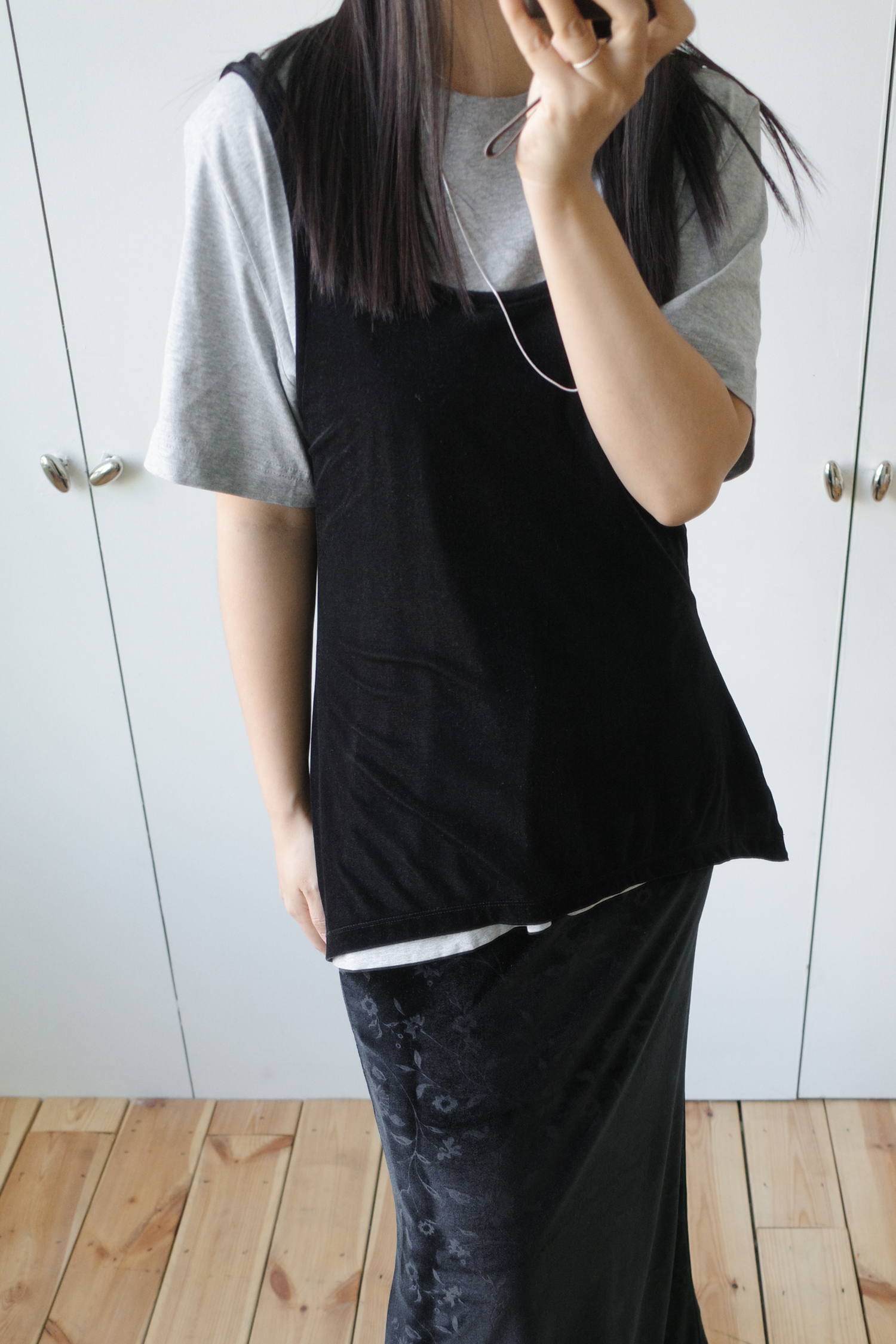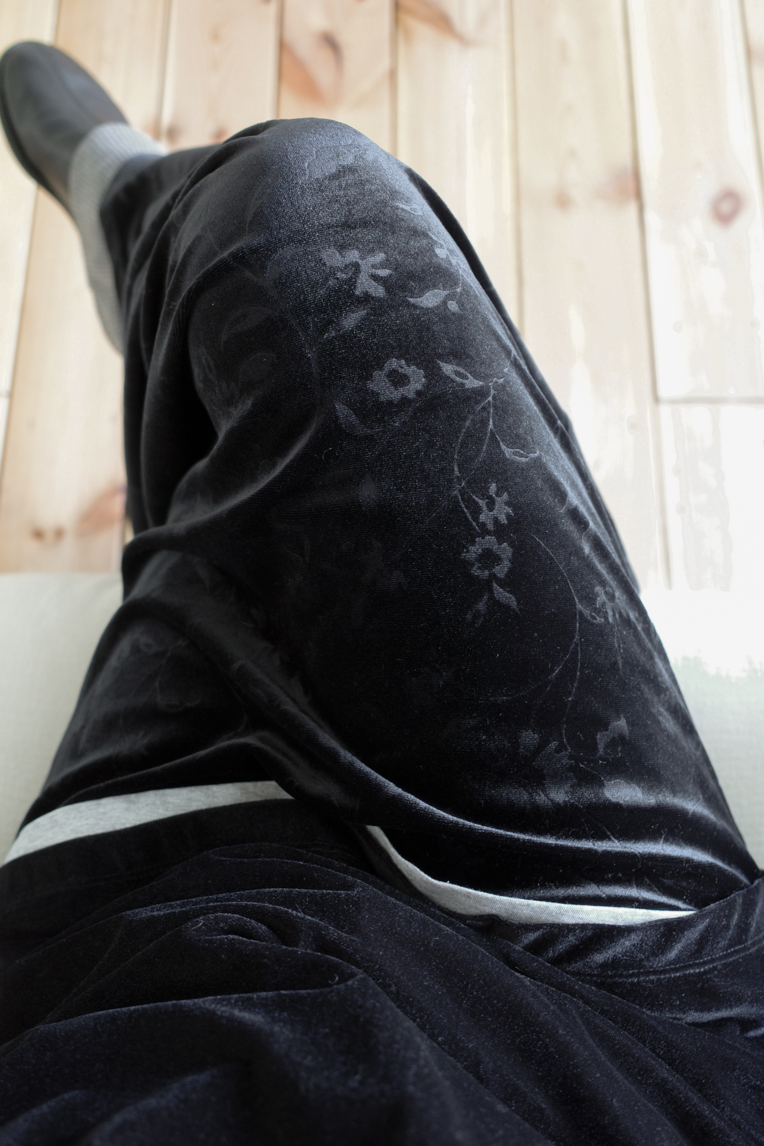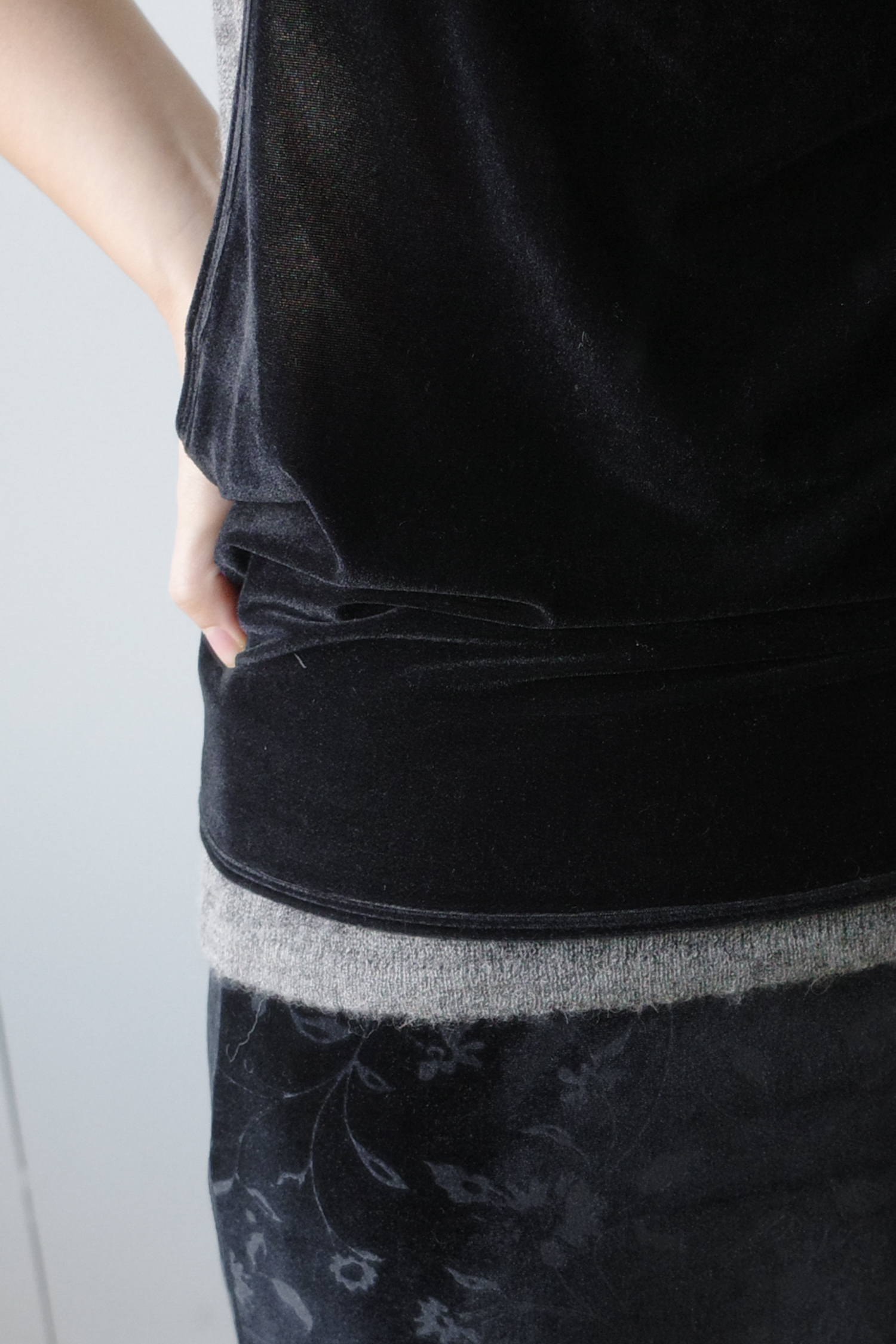 레깅스나 같은 원단의 floral velvet banding pants와 함께 레이어드해도