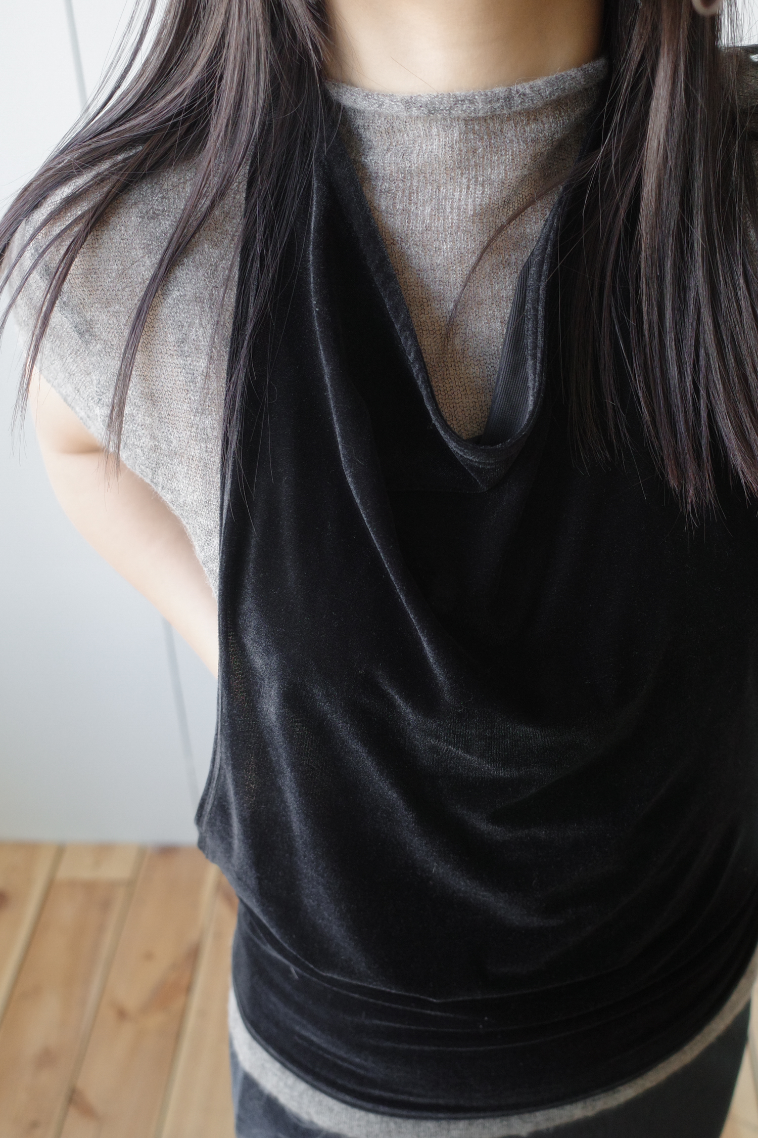 • 사진 속 상의는 코르뷔의 ‘velvet draped sleeveless top’ 제품으로 함께 연출되었습니다.