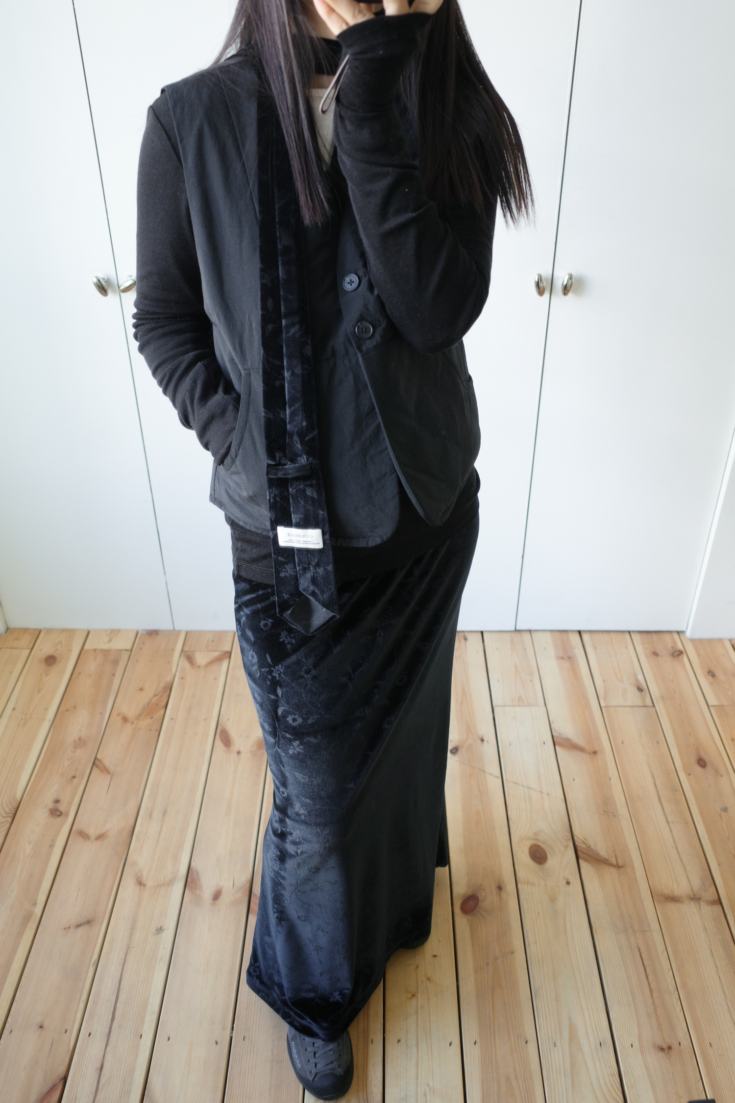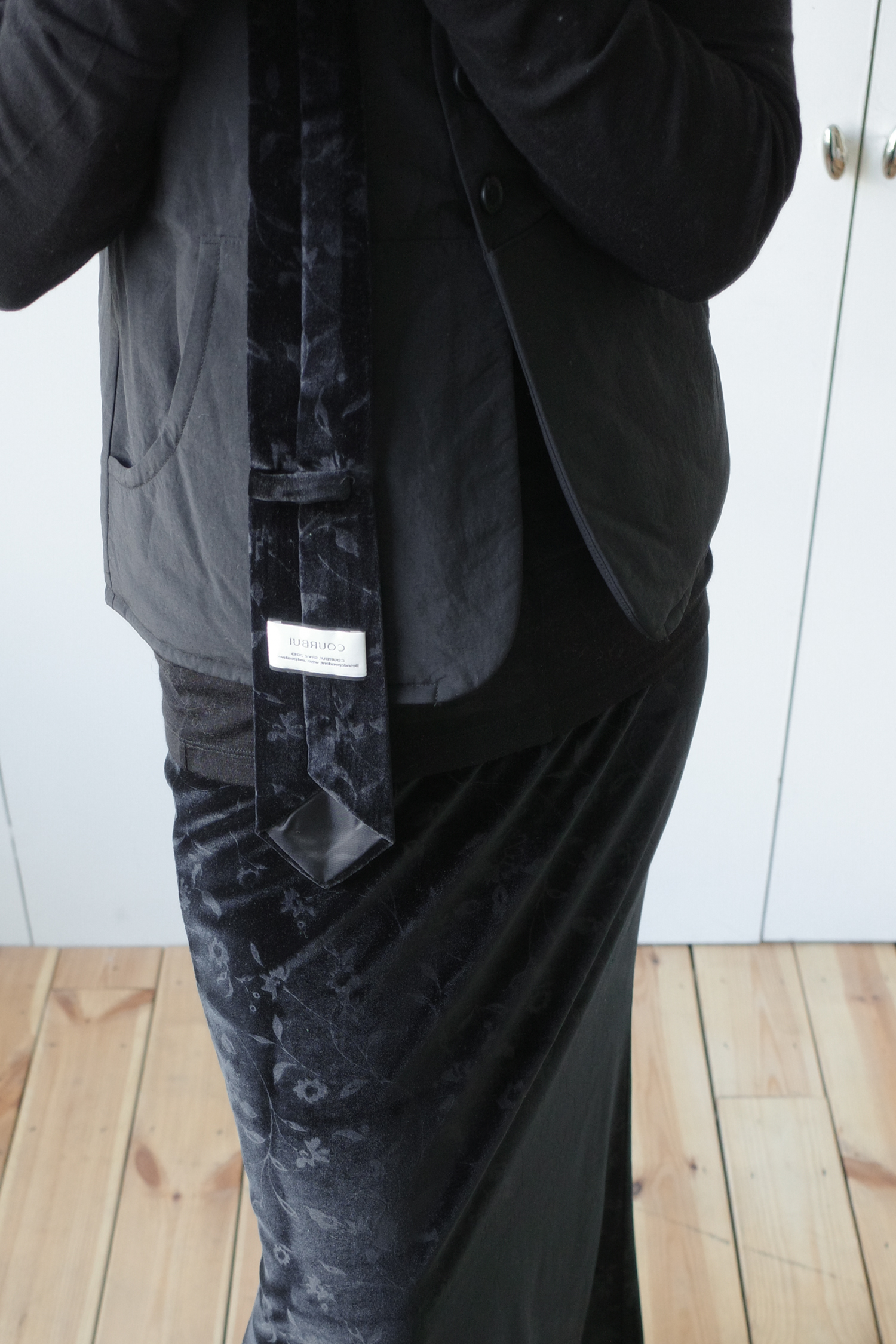 • 사진 속 타이 스카프는 코르뷔의 ‘floral velvet tie scarf’ 제품으로 함께 연출되었습니다.