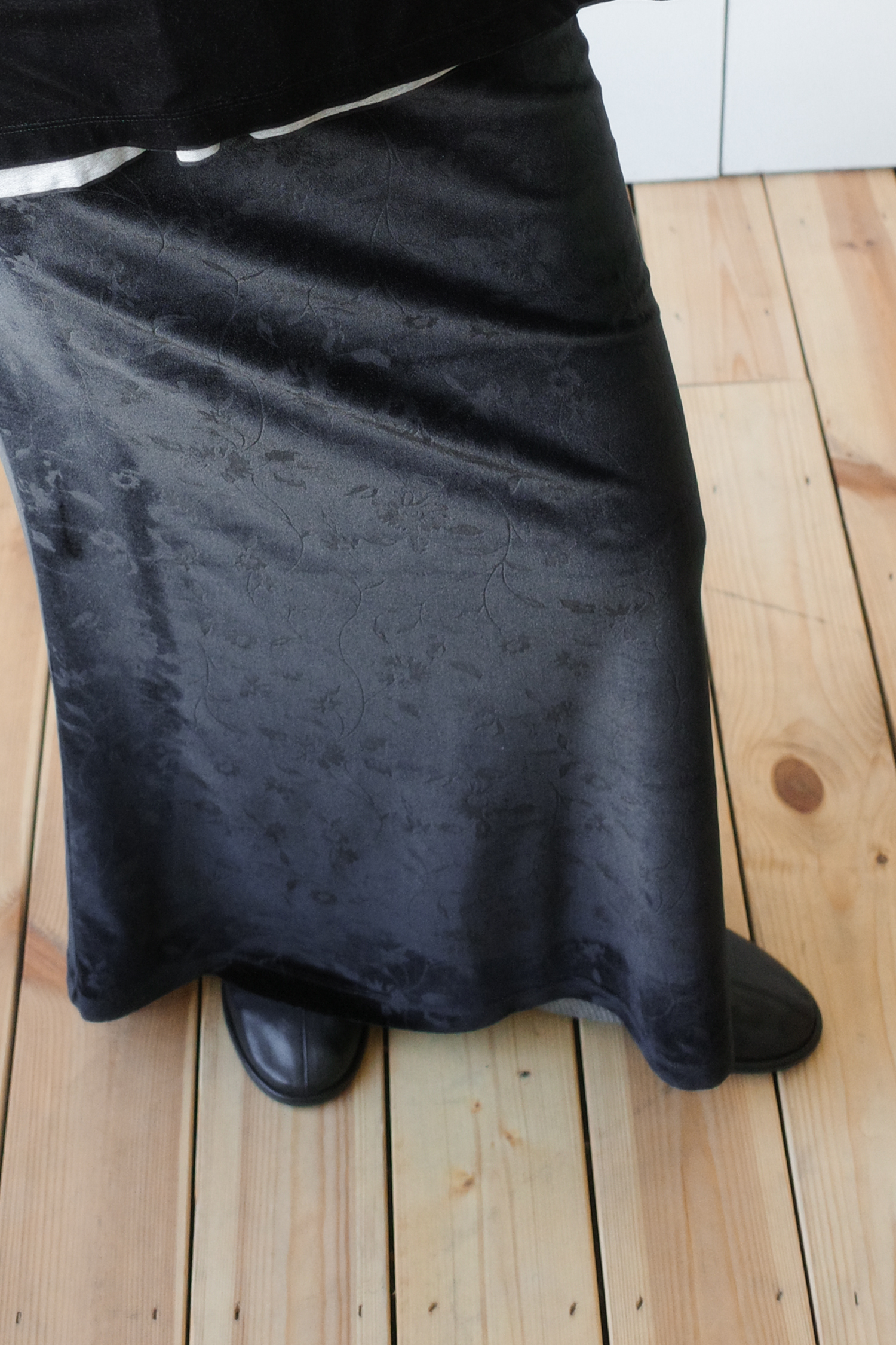 플로럴 엠보 맥시 스커트입니다.