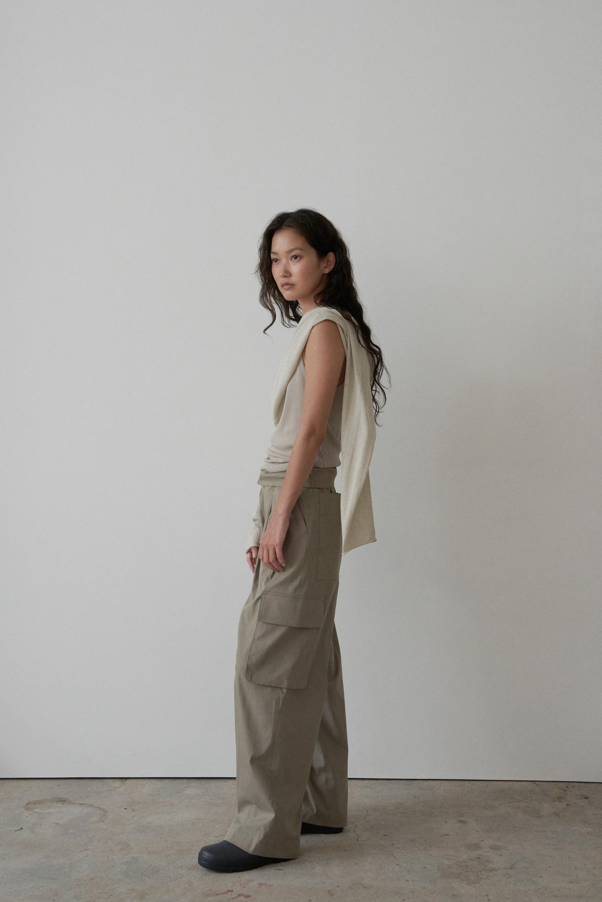 19-3. light pleated pants (khaki gray) / 1 size