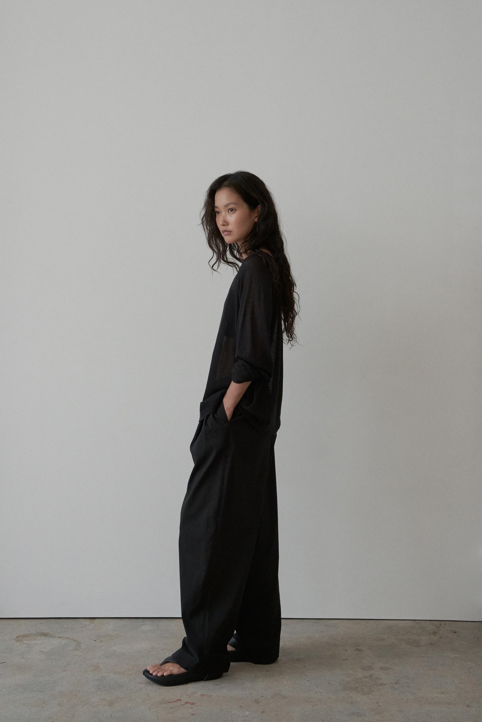 22-1. crinkle relaxed pants (black) / 0 size — shop